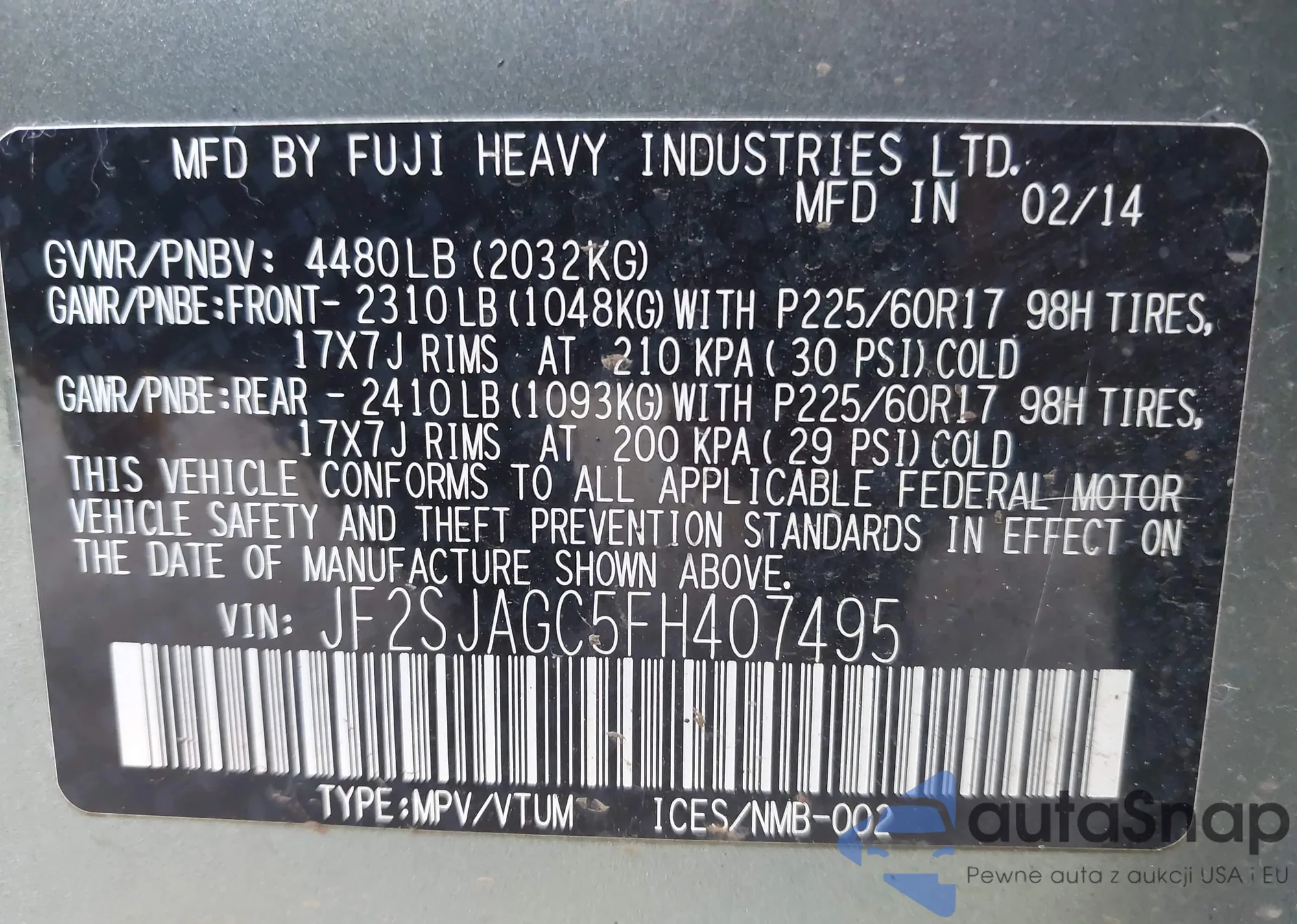 VIN: JF2SJAGC5FH407495