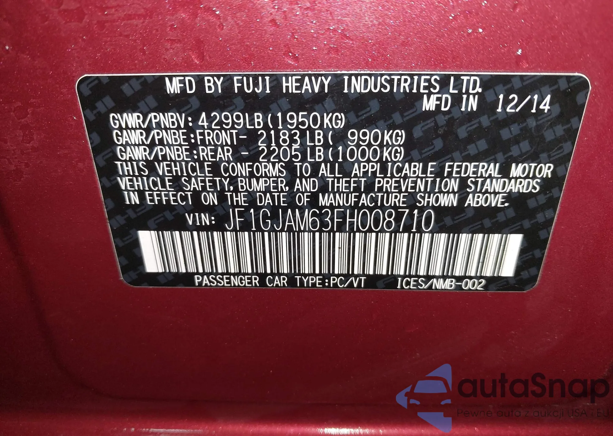 • VIN: JF1GJAM63FH008710