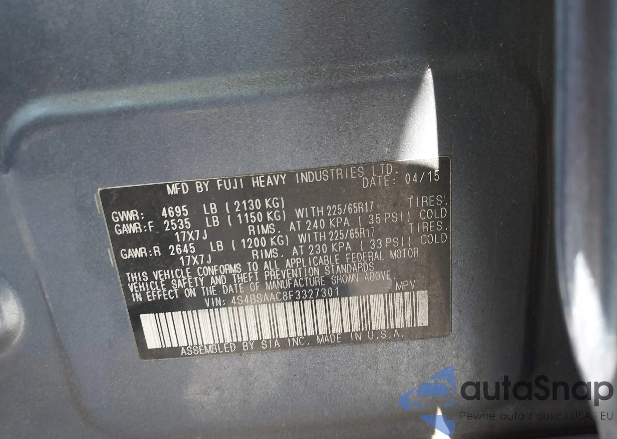 VIN: 4S4BSAAC8F3327301
