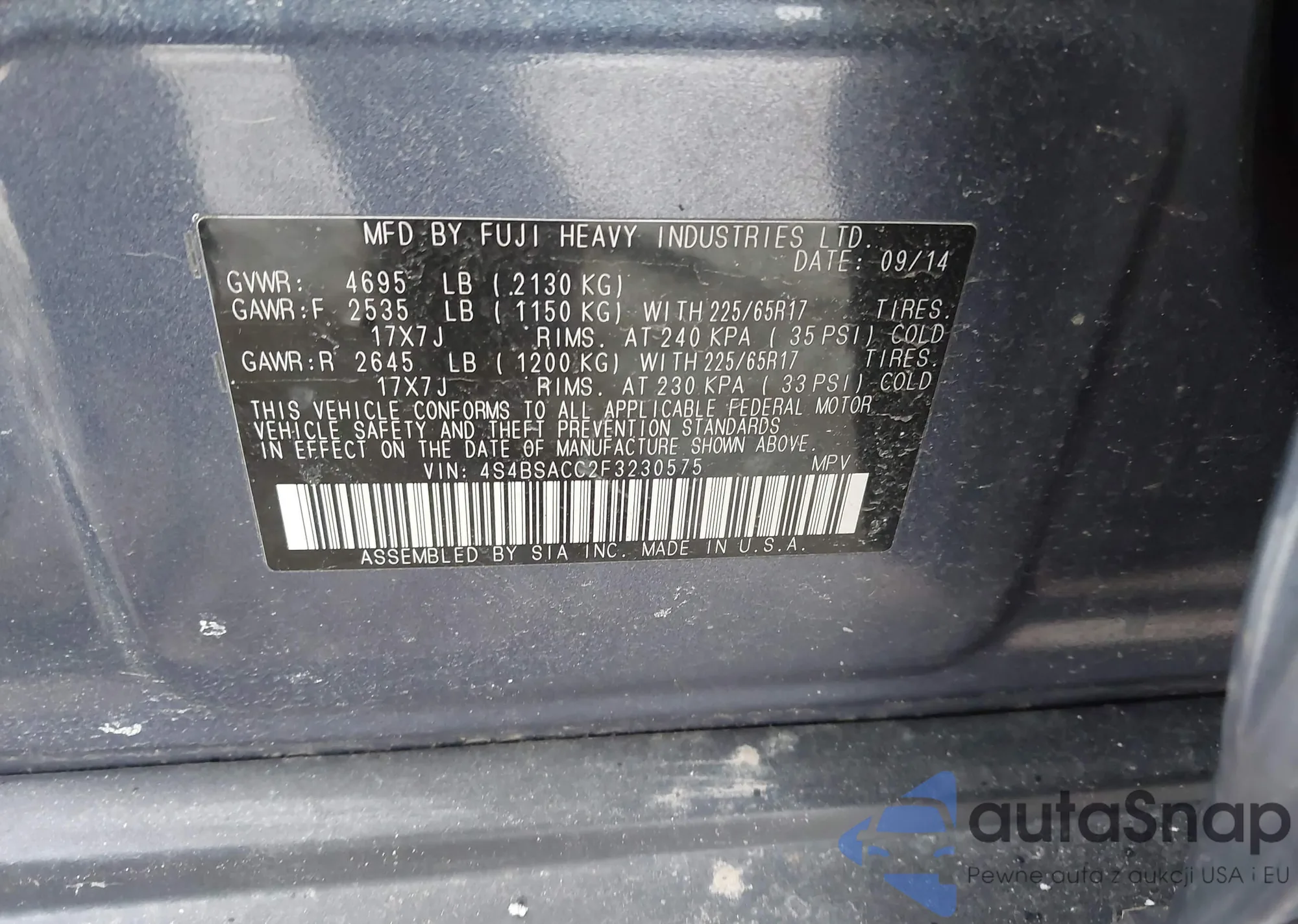 VIN: 4S4BSACC2F3230575