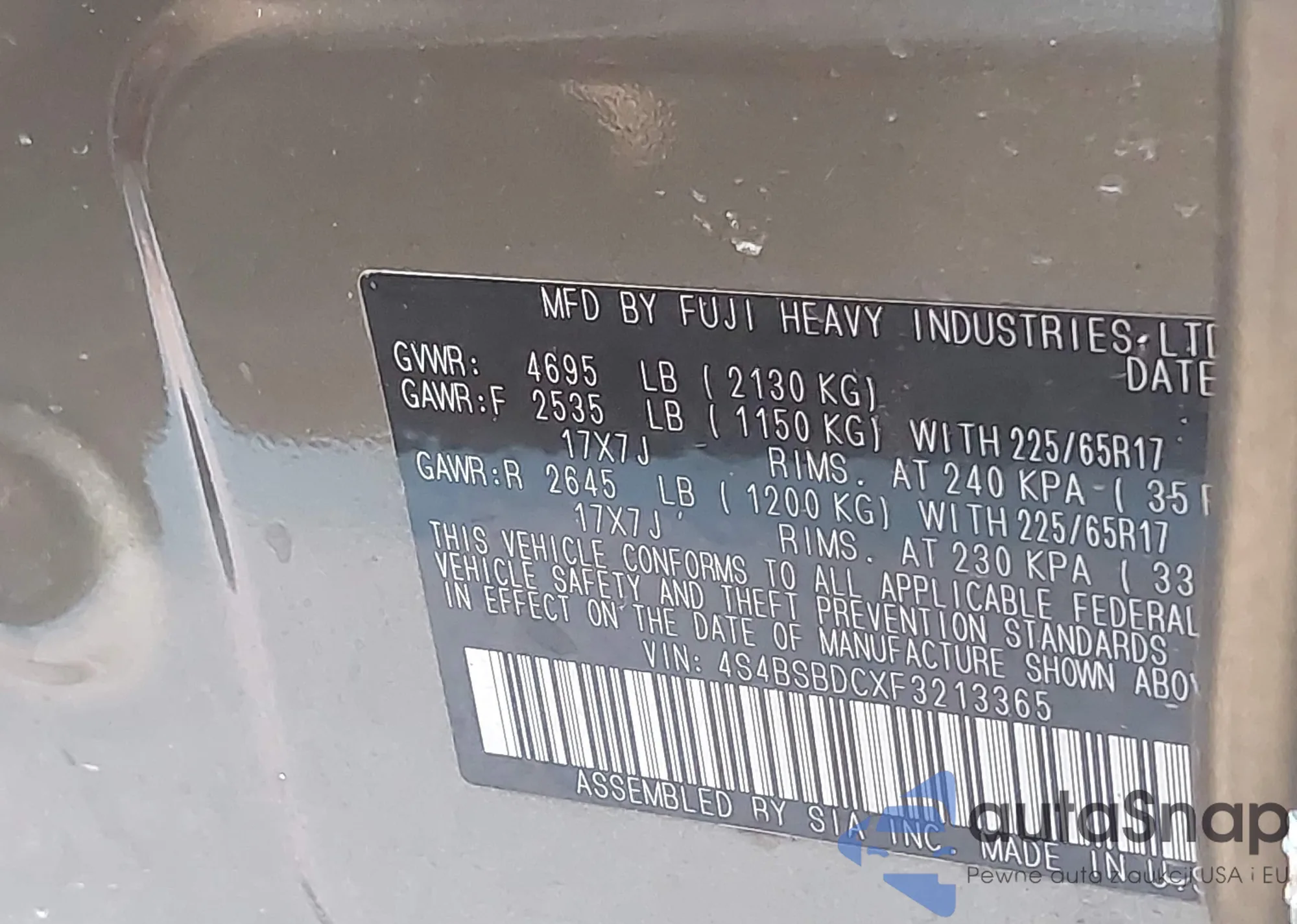VIN: 4S4BSBDCXF3213365