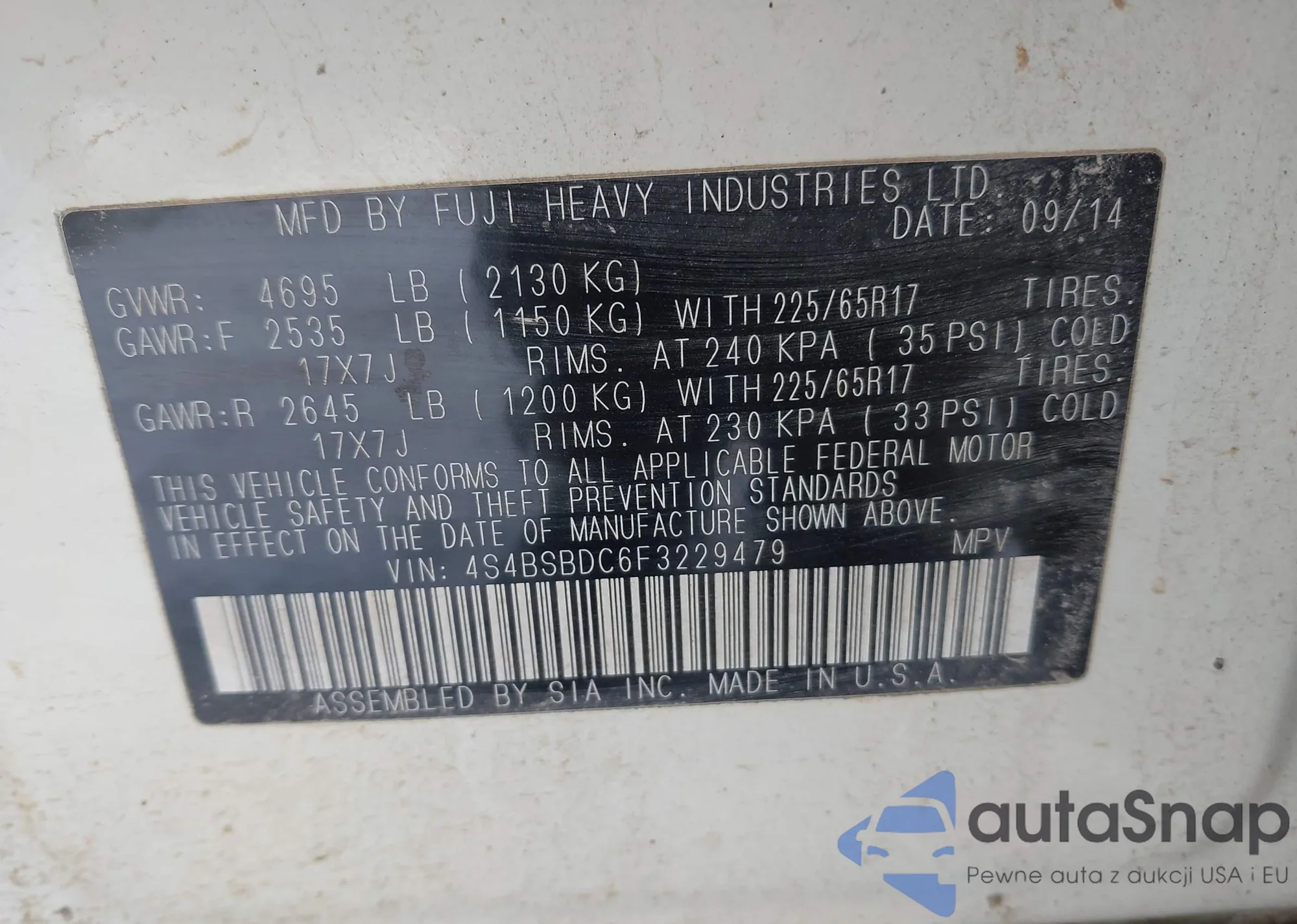 • VIN: 4S4BSBDC6F3229479