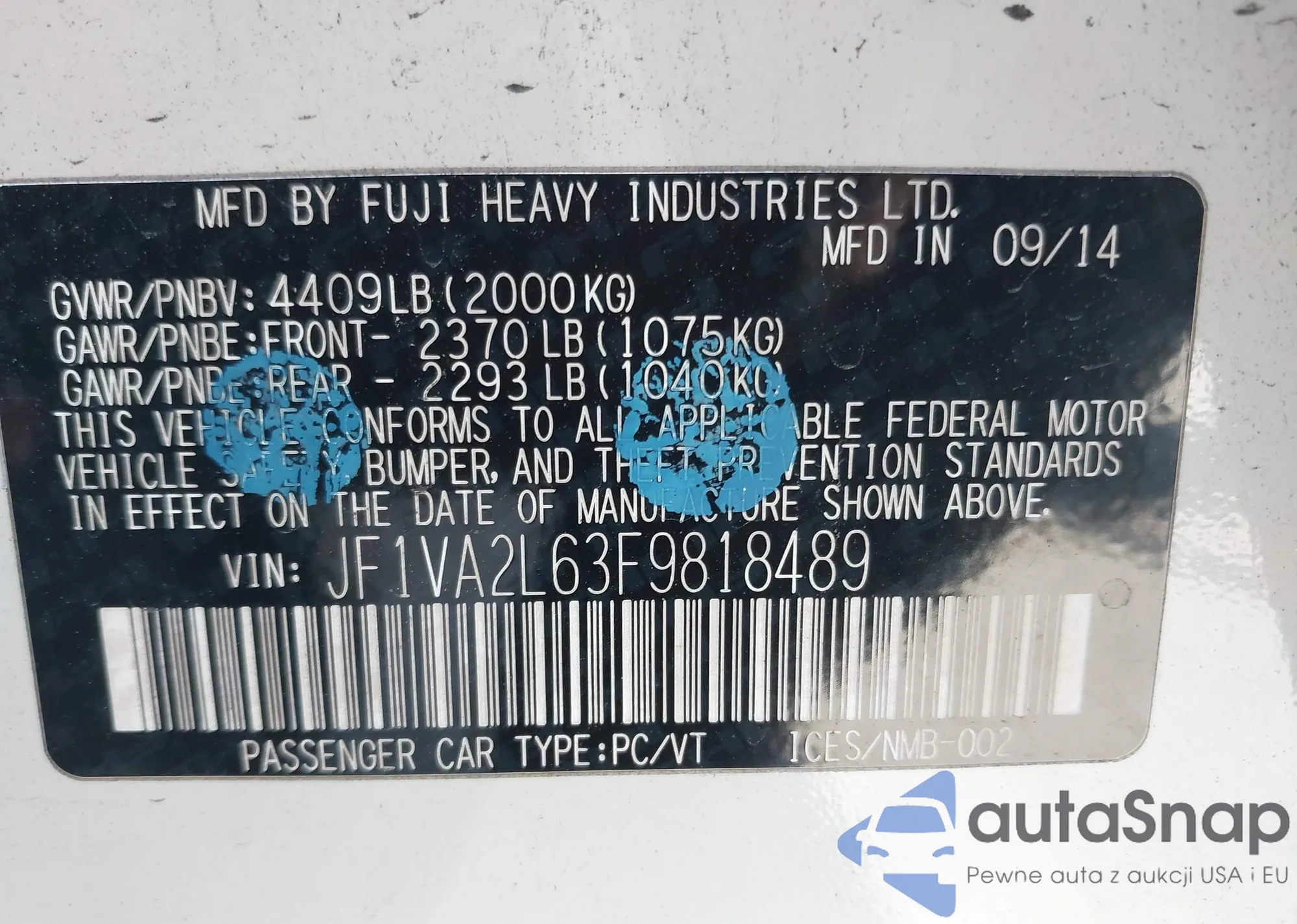 VIN: JF1VA2L63F9818489