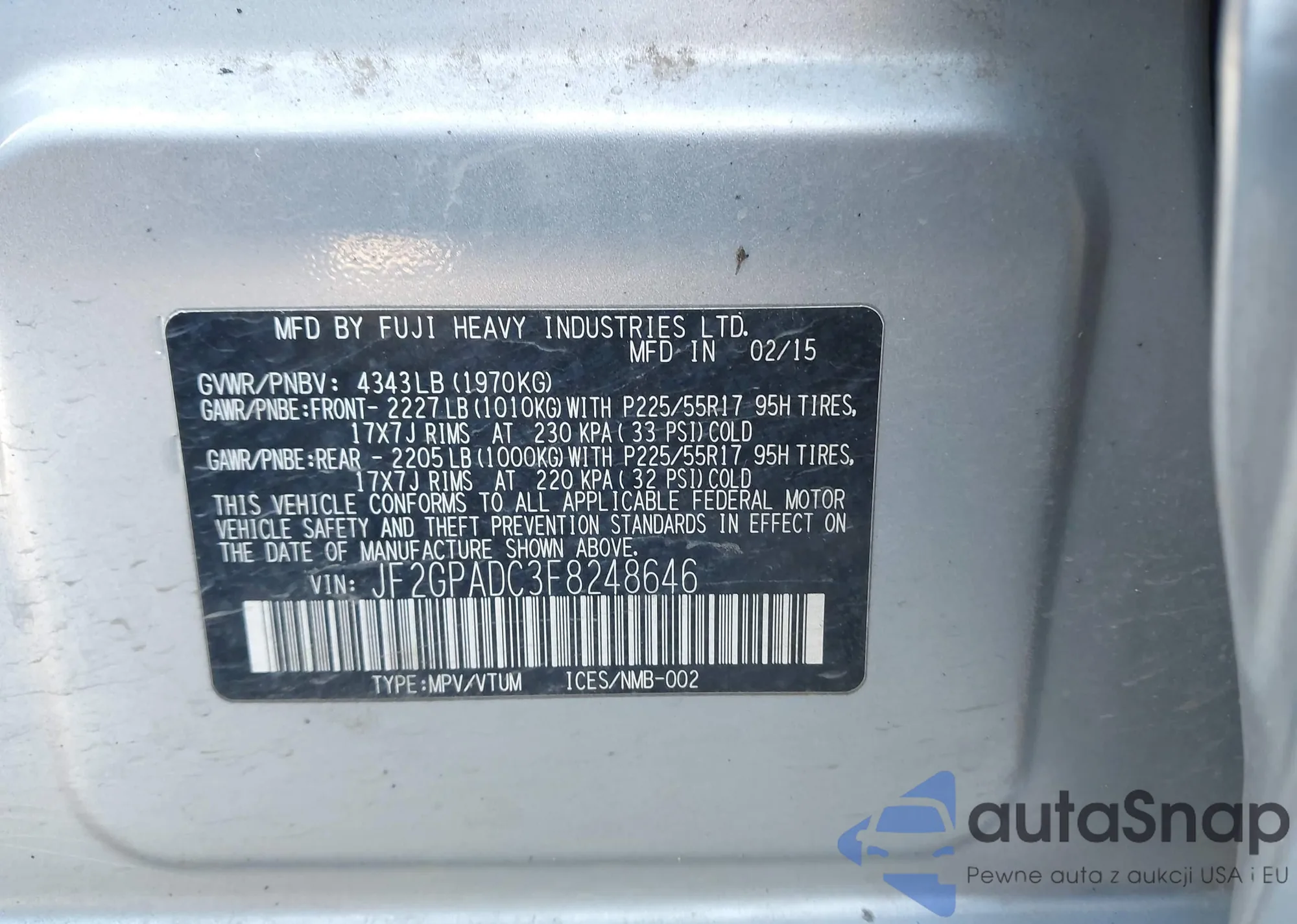 • VIN: JF2GPADC3F8248646