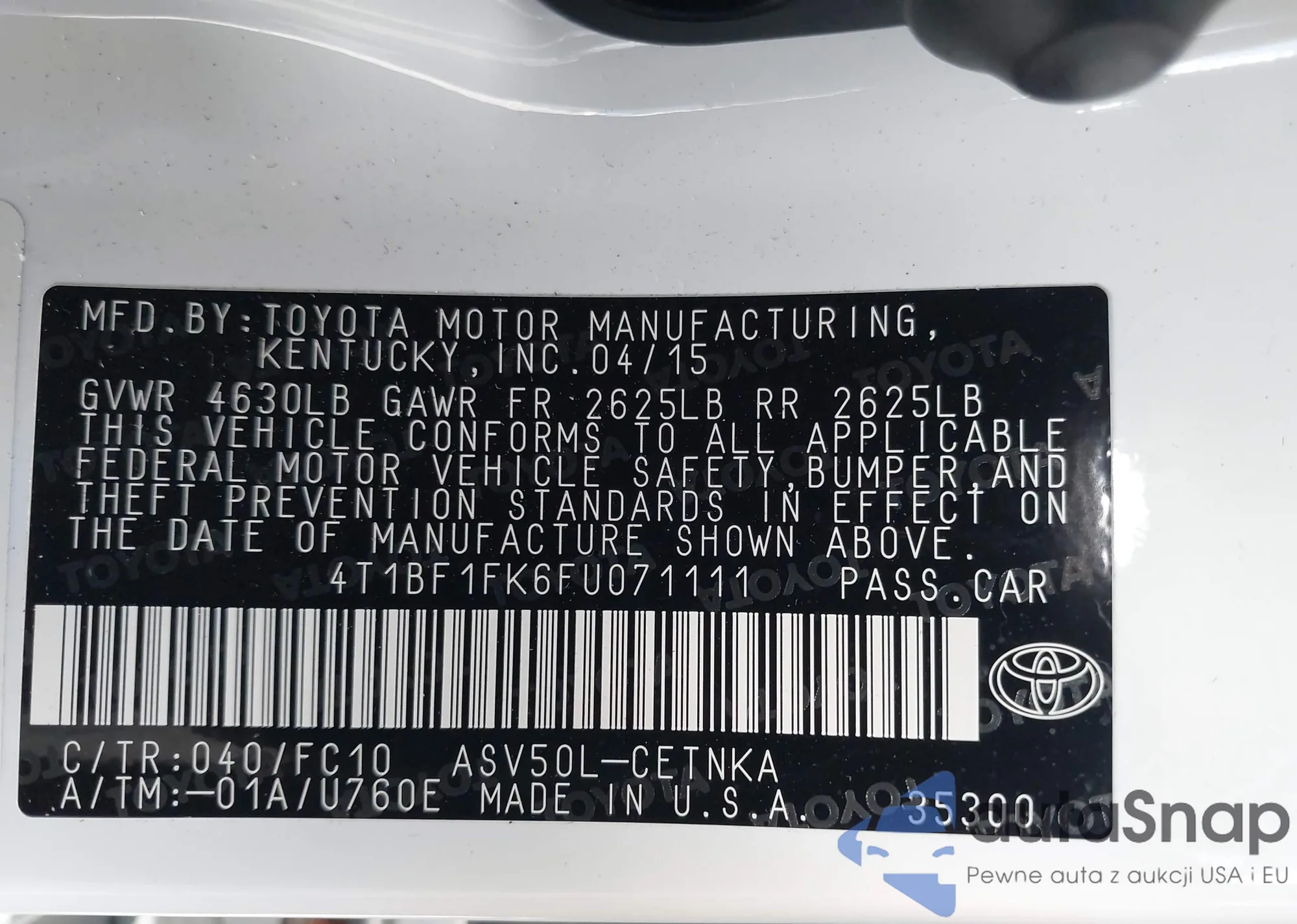 VIN: 4T1BF1FK6FU071111