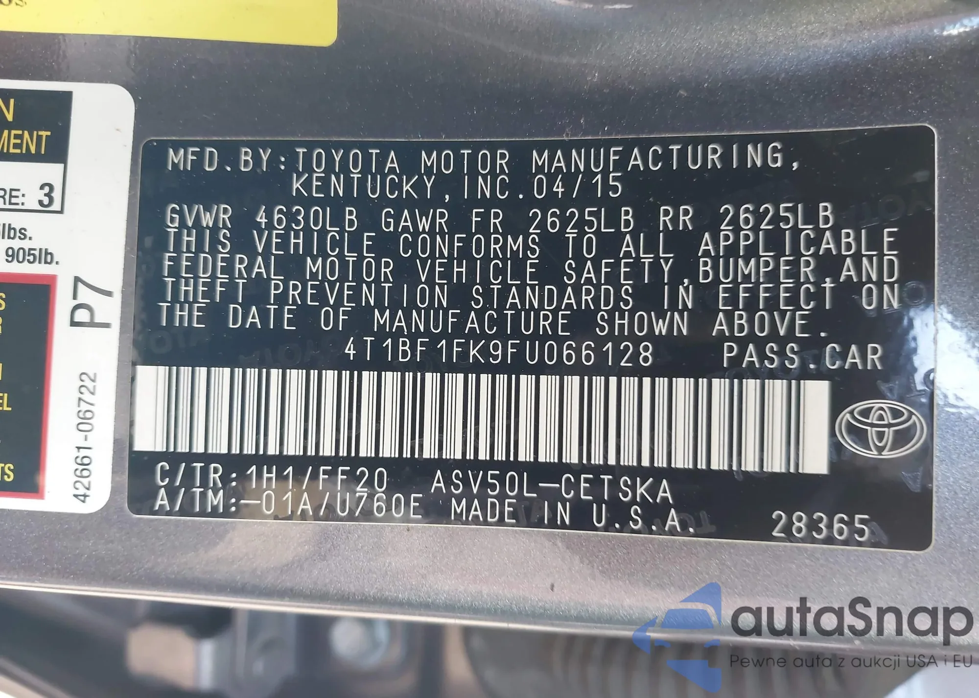VIN: 4T1BF1FK9FU066128
