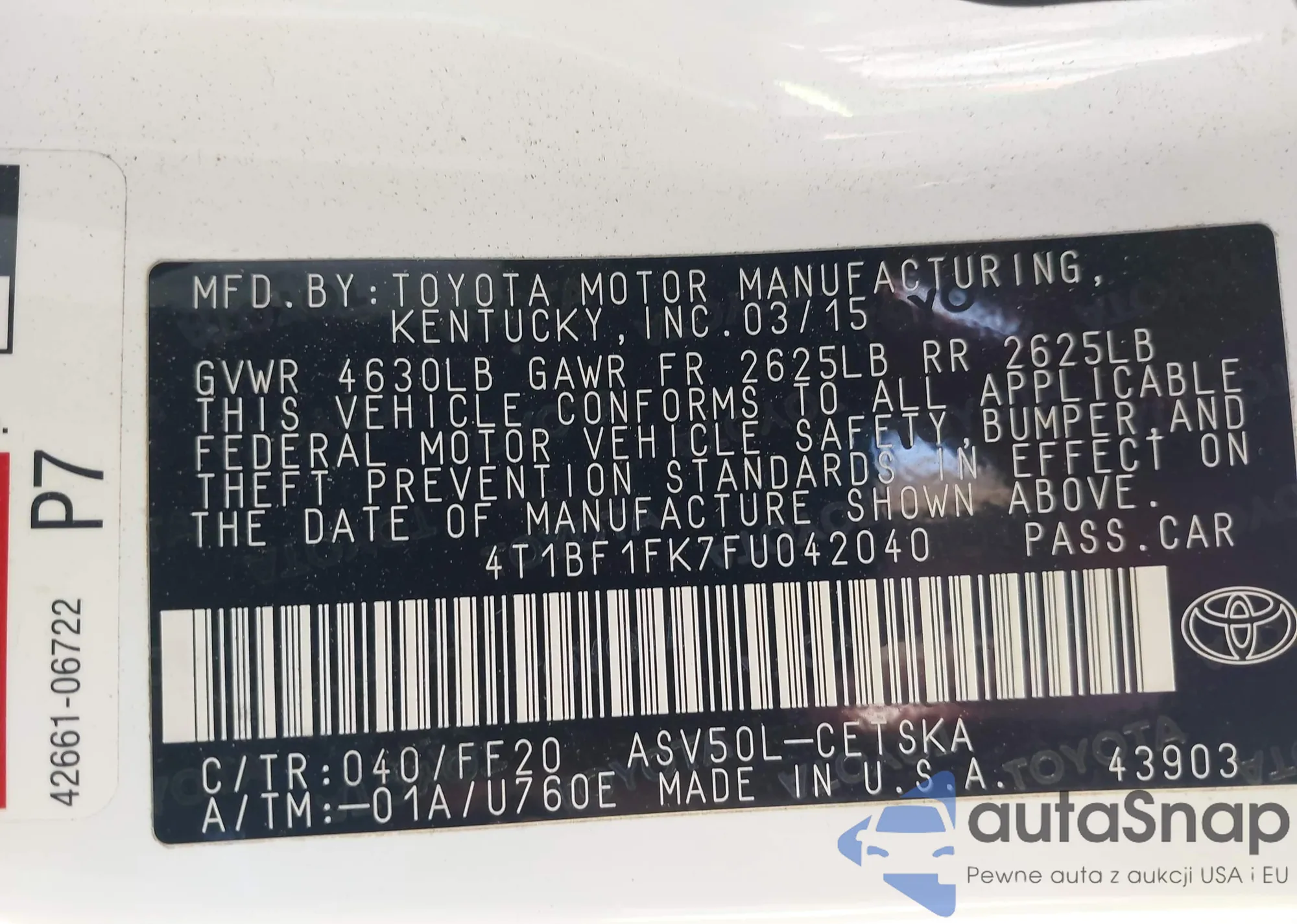 VIN: 4T1BF1FK7FU042040