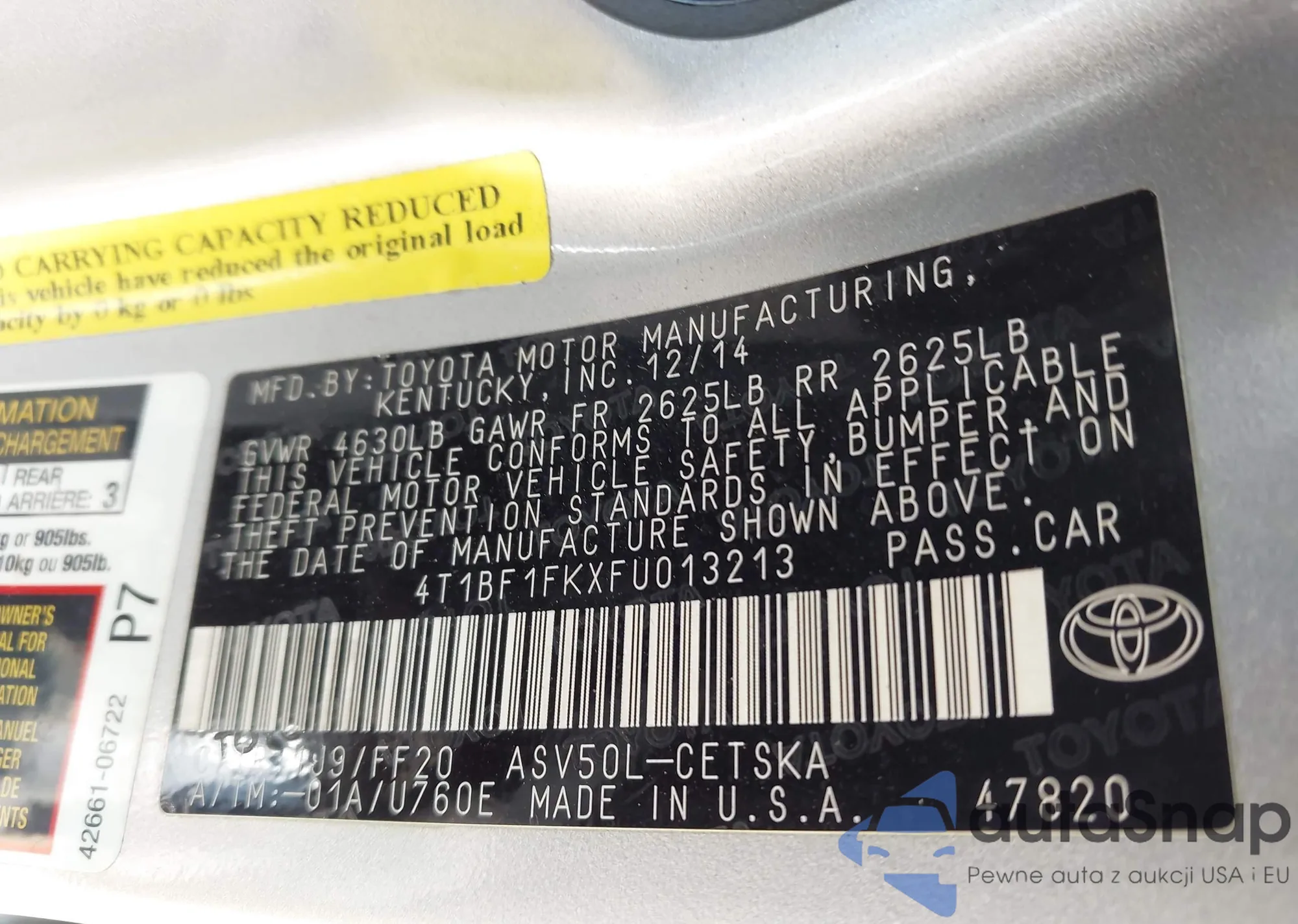 VIN: 4T1BF1FKXFU013213