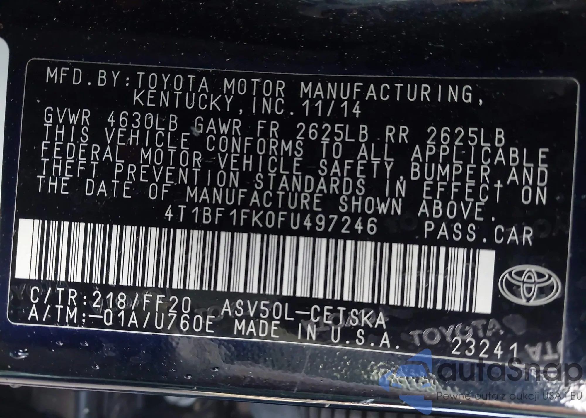 VIN: 4T1BF1FK0FU497246