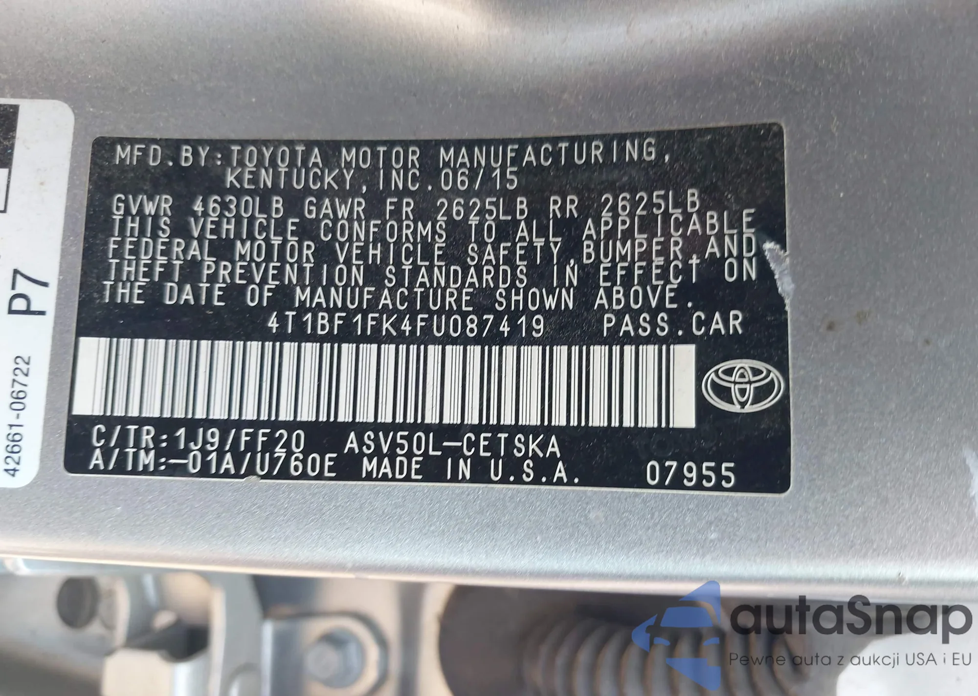 VIN: 4T1BF1FK4FU087419