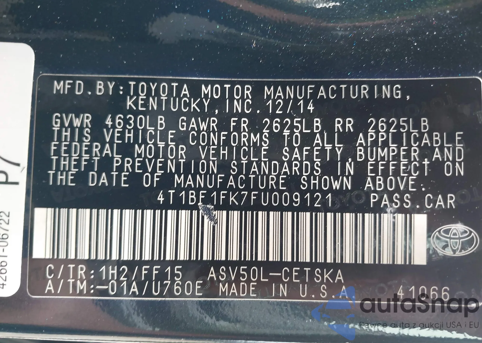 VIN: 4T1BF1FK7FU009121