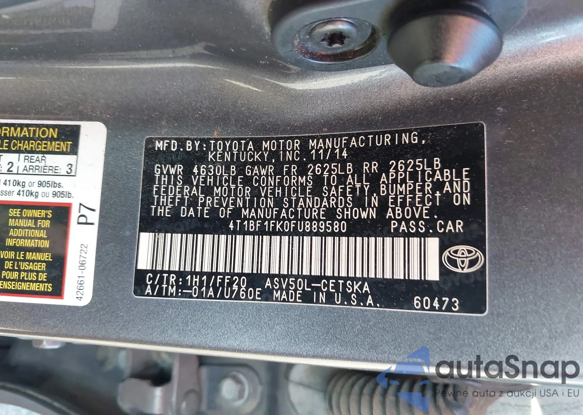 VIN: 4T1BF1FK0FU889580