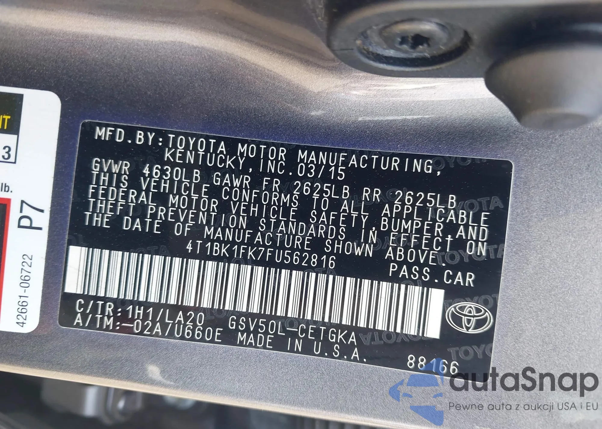 VIN: 4T1BK1FK7FU562816
