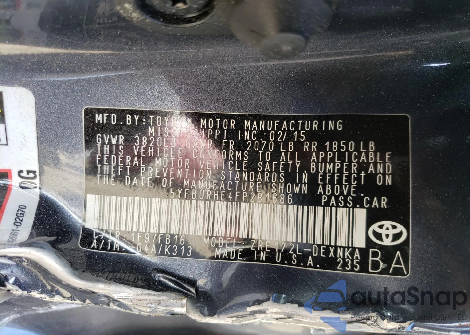 Toyota Corolla 2015 – История автомобиля (продан на COPART)