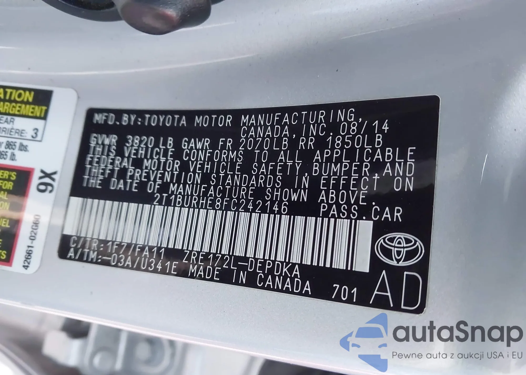 VIN: 2T1BURHE8FC242146
