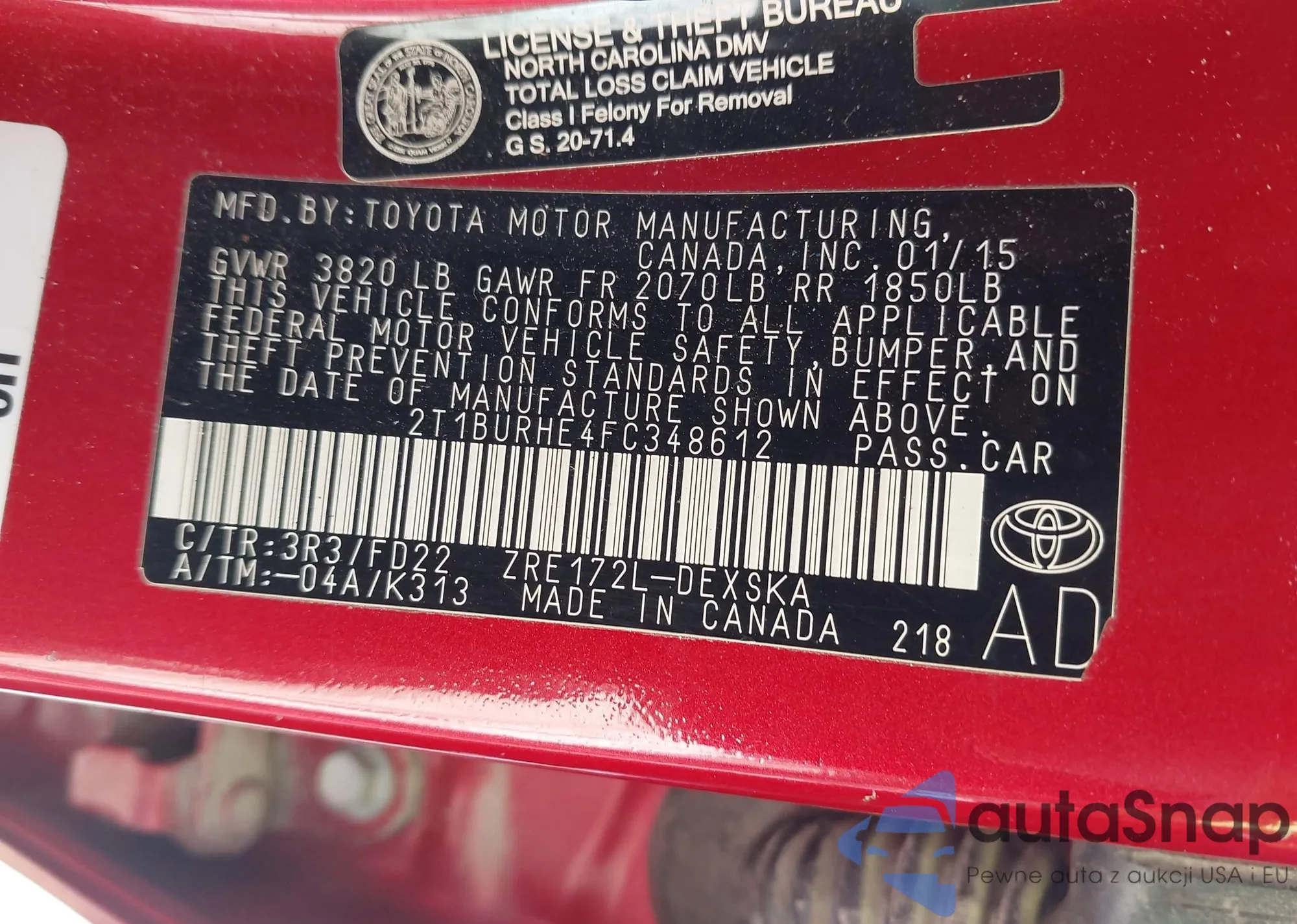 VIN: 2T1BURHE4FC348612