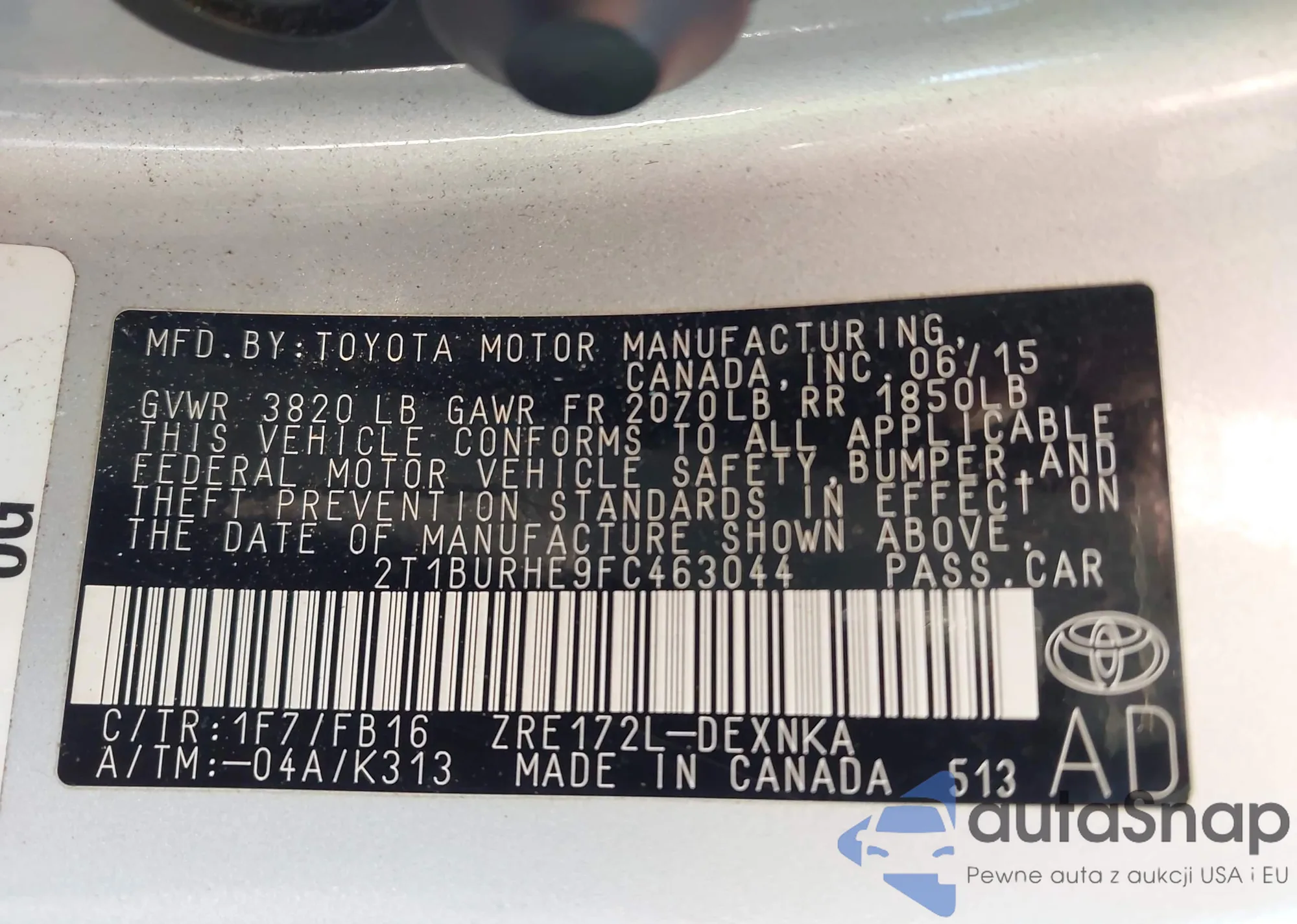 VIN: 2T1BURHE9FC463044