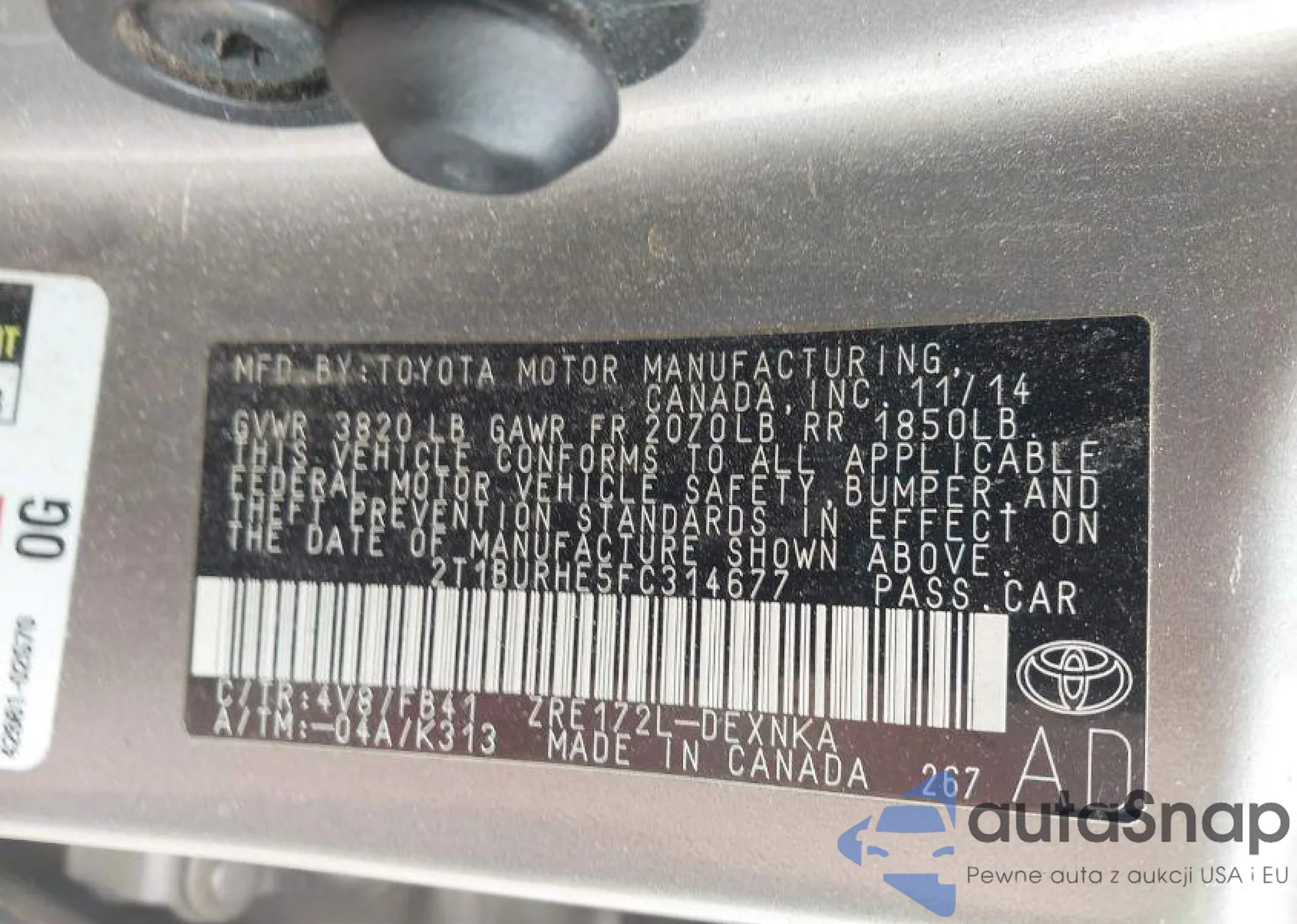 VIN: 2T1BURHE5FC314677