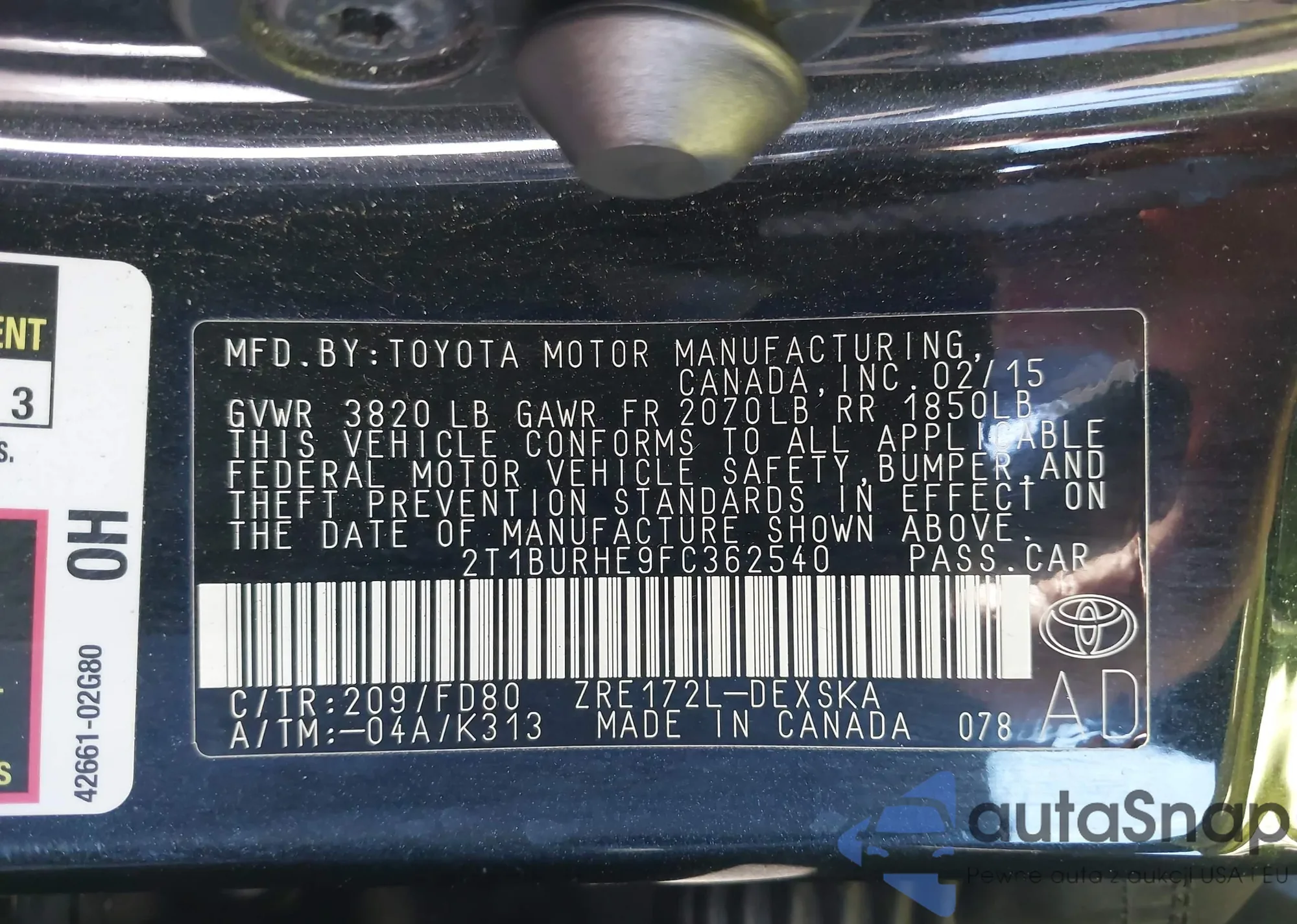 VIN: 2T1BURHE9FC362540