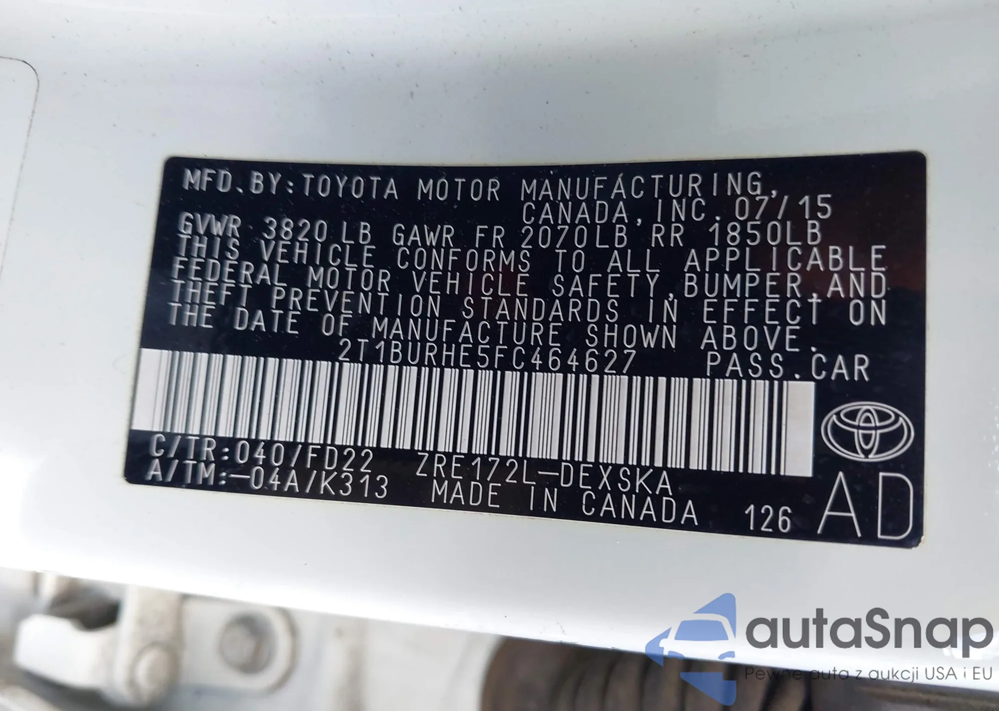 VIN: 2T1BURHE5FC464627