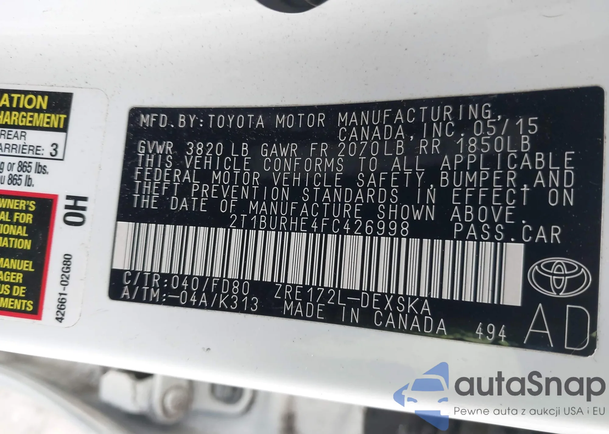 VIN: 2T1BURHE4FC426998