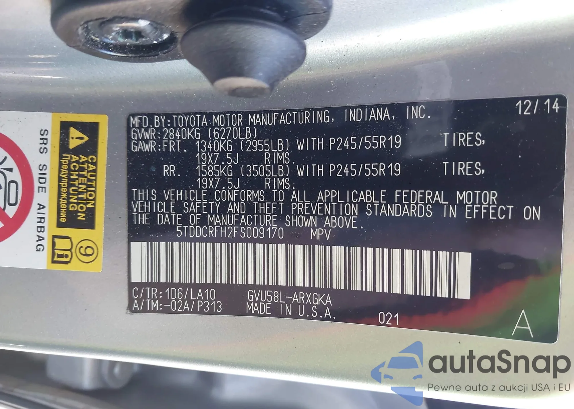 • VIN: 5TDDCRFH2FS009170