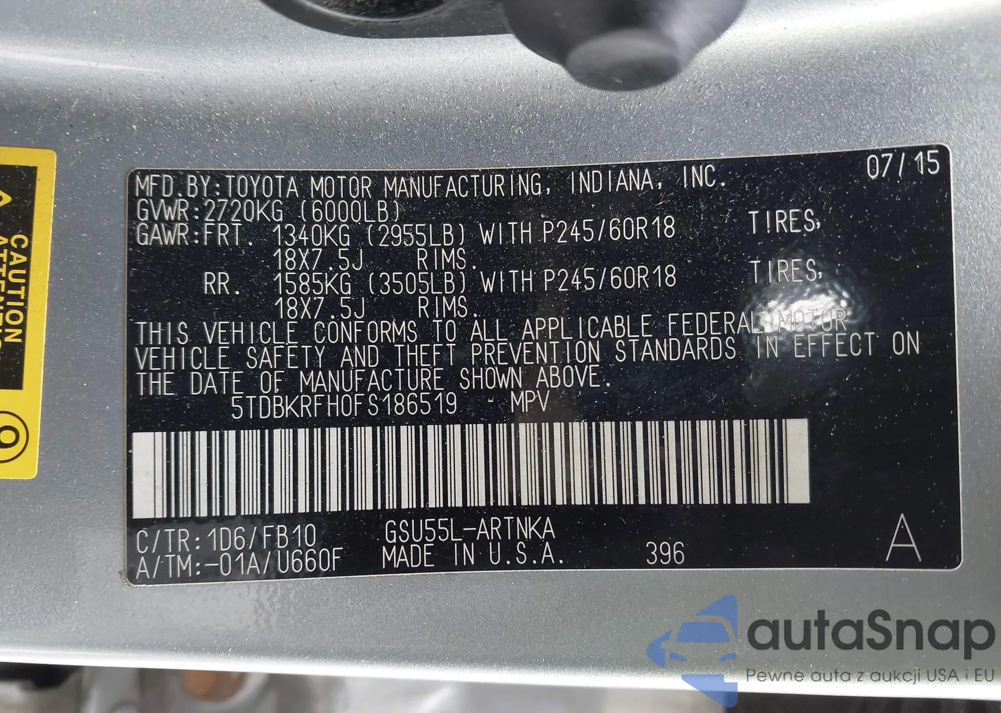 Автомобиль Toyota Highlander 2015 (VIN 5TDBKRFH0FS186519) ранее не участвовал в торгах. Документы чистые, пробег соответствует или ниже среднего по рынку. Продаётся страховой компанией — рекомендуем покупку. Доставка в порт займет около 6–8 недель.