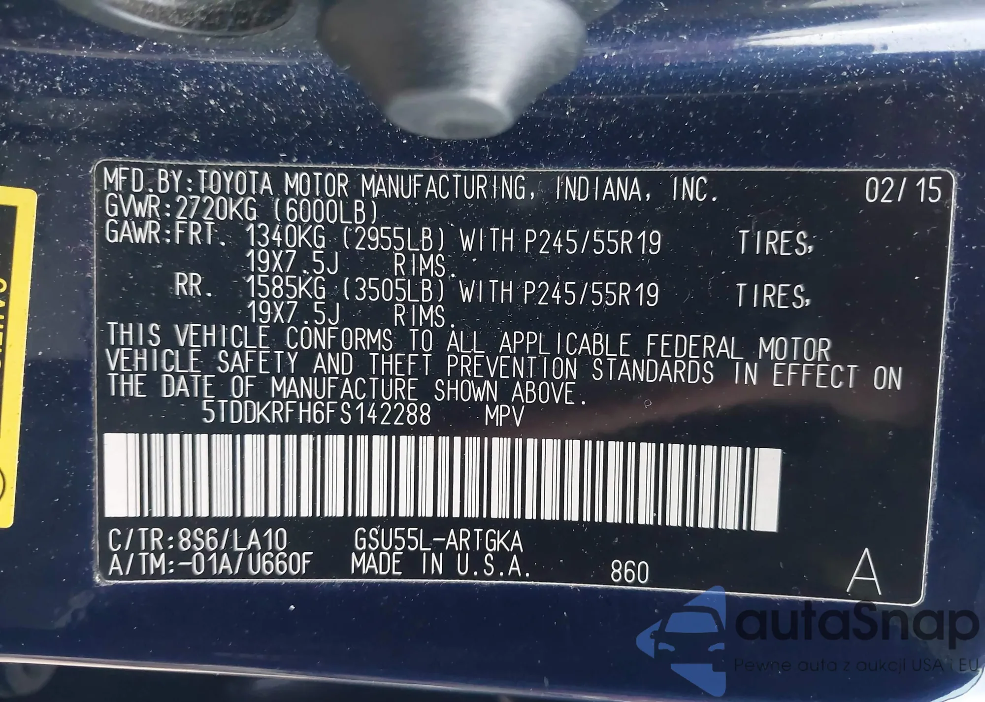 VIN: 5TDDKRFH6FS142288