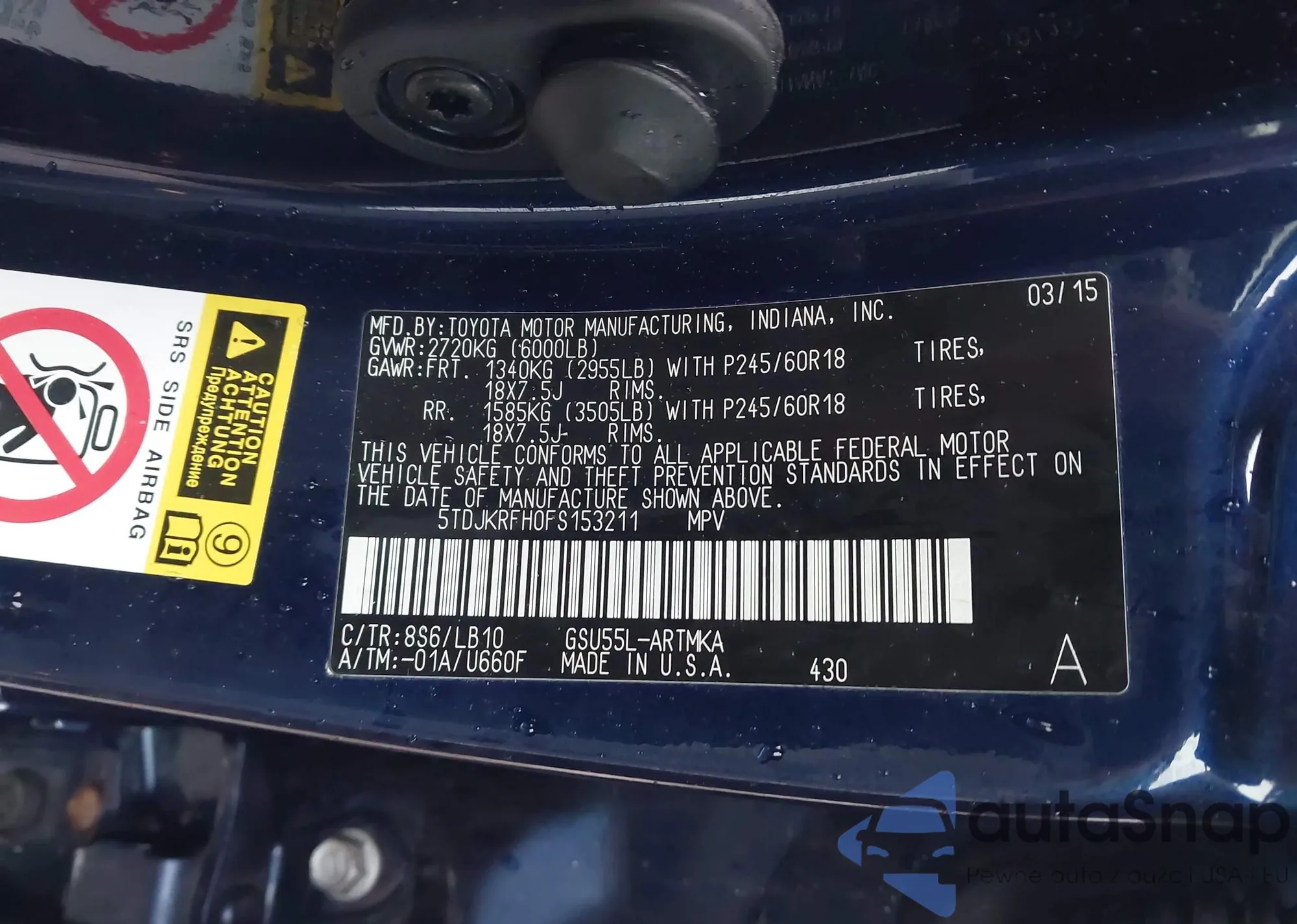 Автомобиль Toyota Highlander 2015 (VIN 5TDJKRFH0FS153211) ранее не участвовал в торгах. Документы чистые, пробег соответствует или ниже среднего по рынку. Продаётся страховой компанией — рекомендуем покупку. Доставка в порт займет около 6–8 недель.