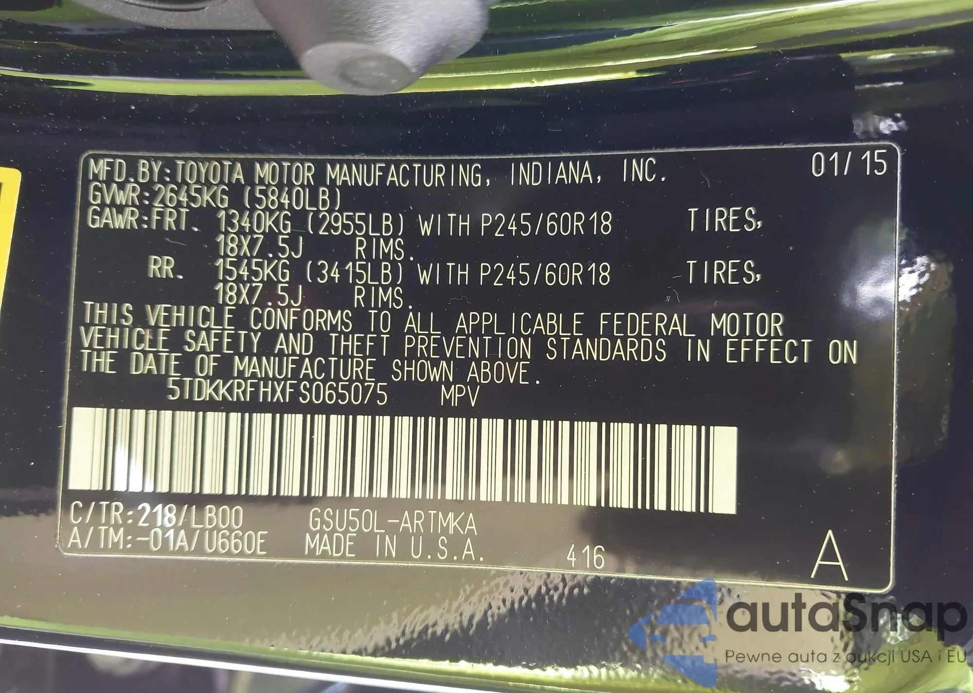 Автомобиль Toyota Highlander 2015 (VIN 5TDKKRFHXFS065075) ранее не участвовал в торгах. Документы чистые, пробег соответствует или ниже среднего по рынку. Продаётся страховой компанией — рекомендуем покупку. Доставка в порт займет около 6–8 недель.