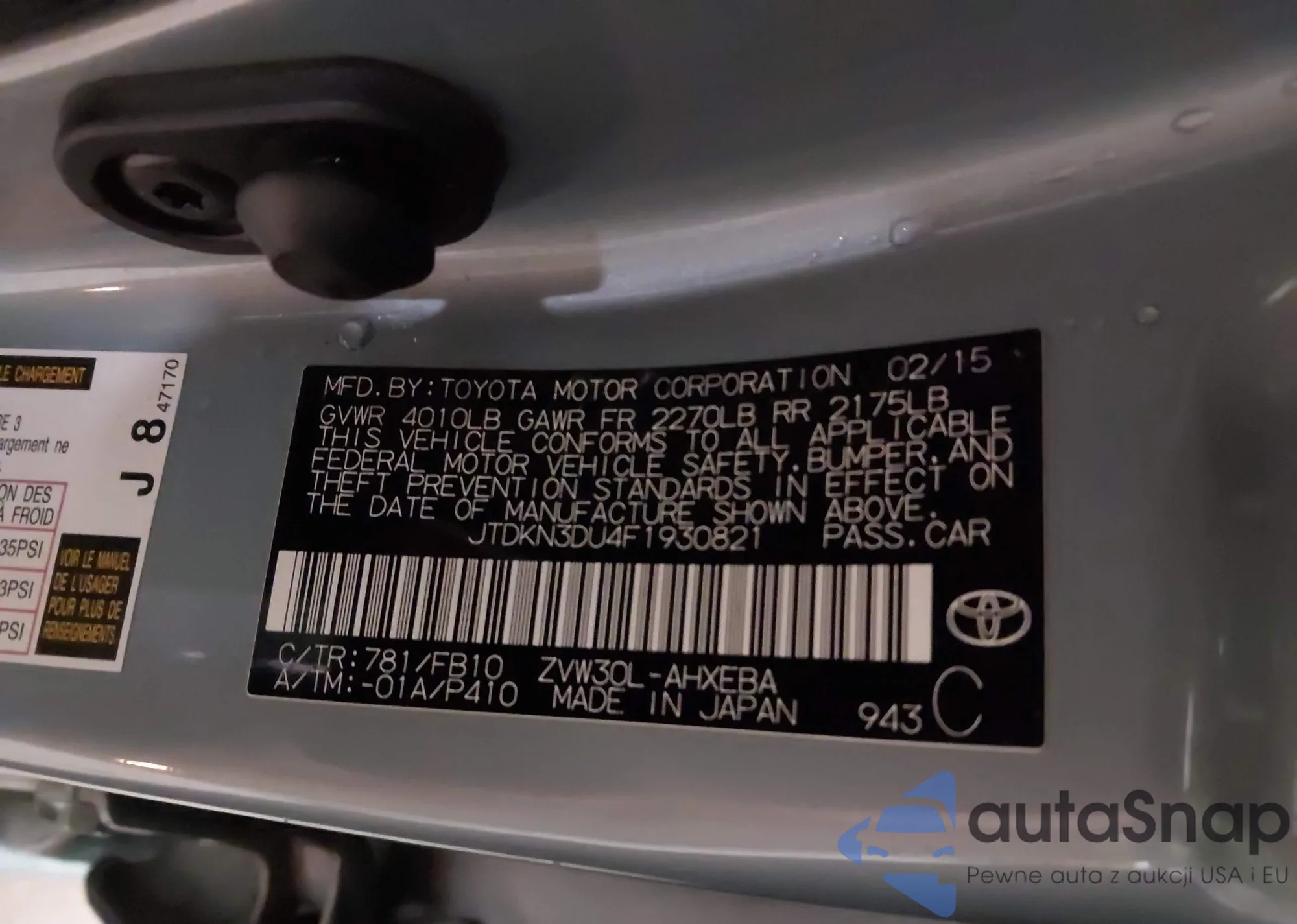 Автомобиль Toyota Prius 2015 (VIN JTDKN3DU4F1930821) ранее не участвовал в торгах. Документы чистые, пробег соответствует или ниже среднего по рынку. Продаётся страховой компанией — рекомендуем покупку. Доставка в порт займет около 6–8 недель.