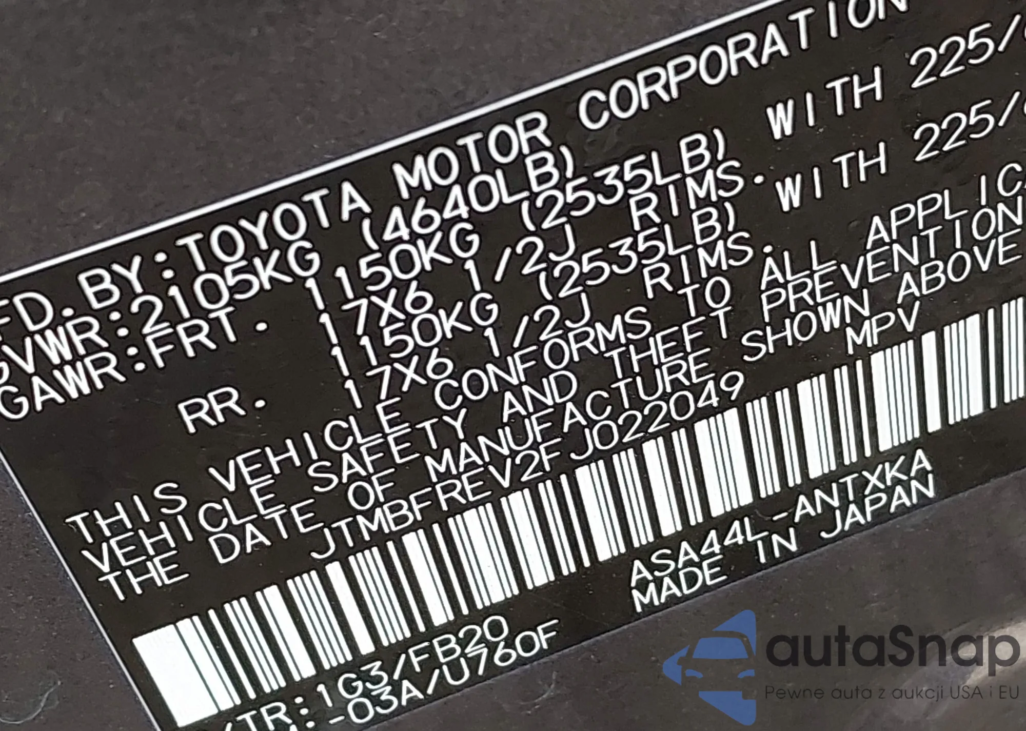 VIN: JTMBFREV2FJ022049