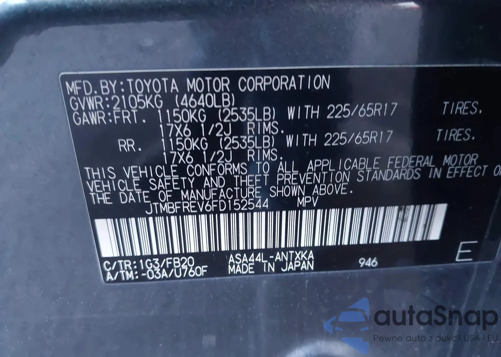 VIN: JTMBFREV6FD152544