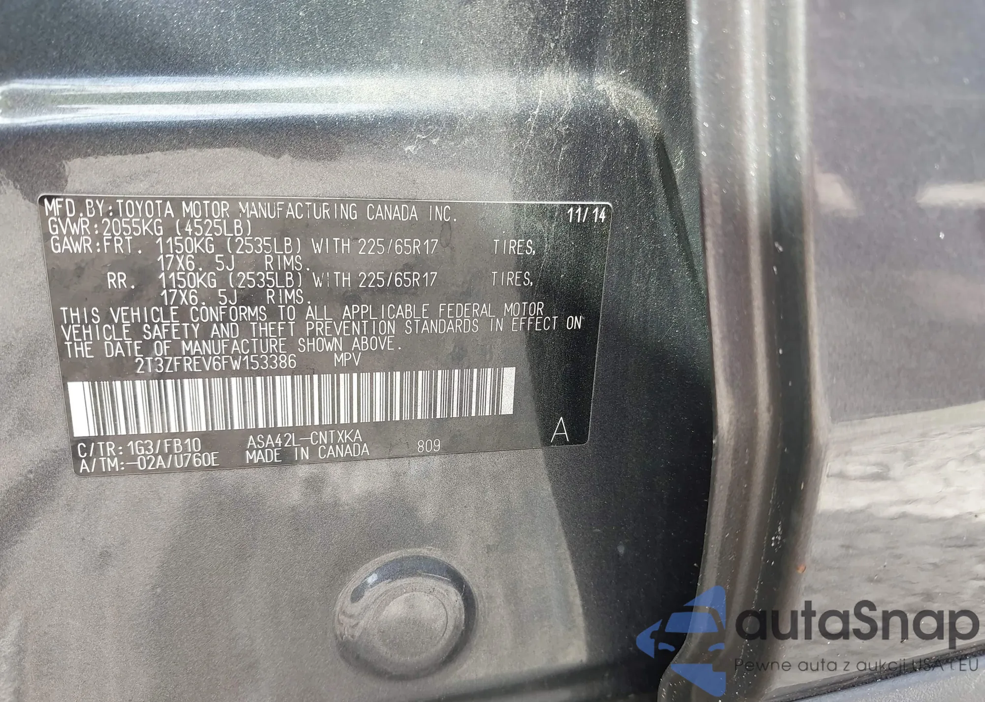 VIN: 2T3ZFREV6FW153386