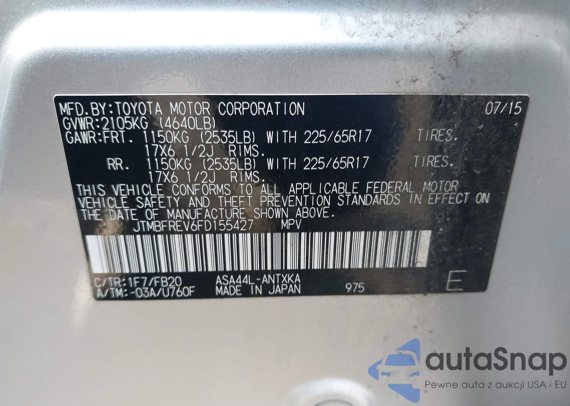 VIN: JTMBFREV6FD155427