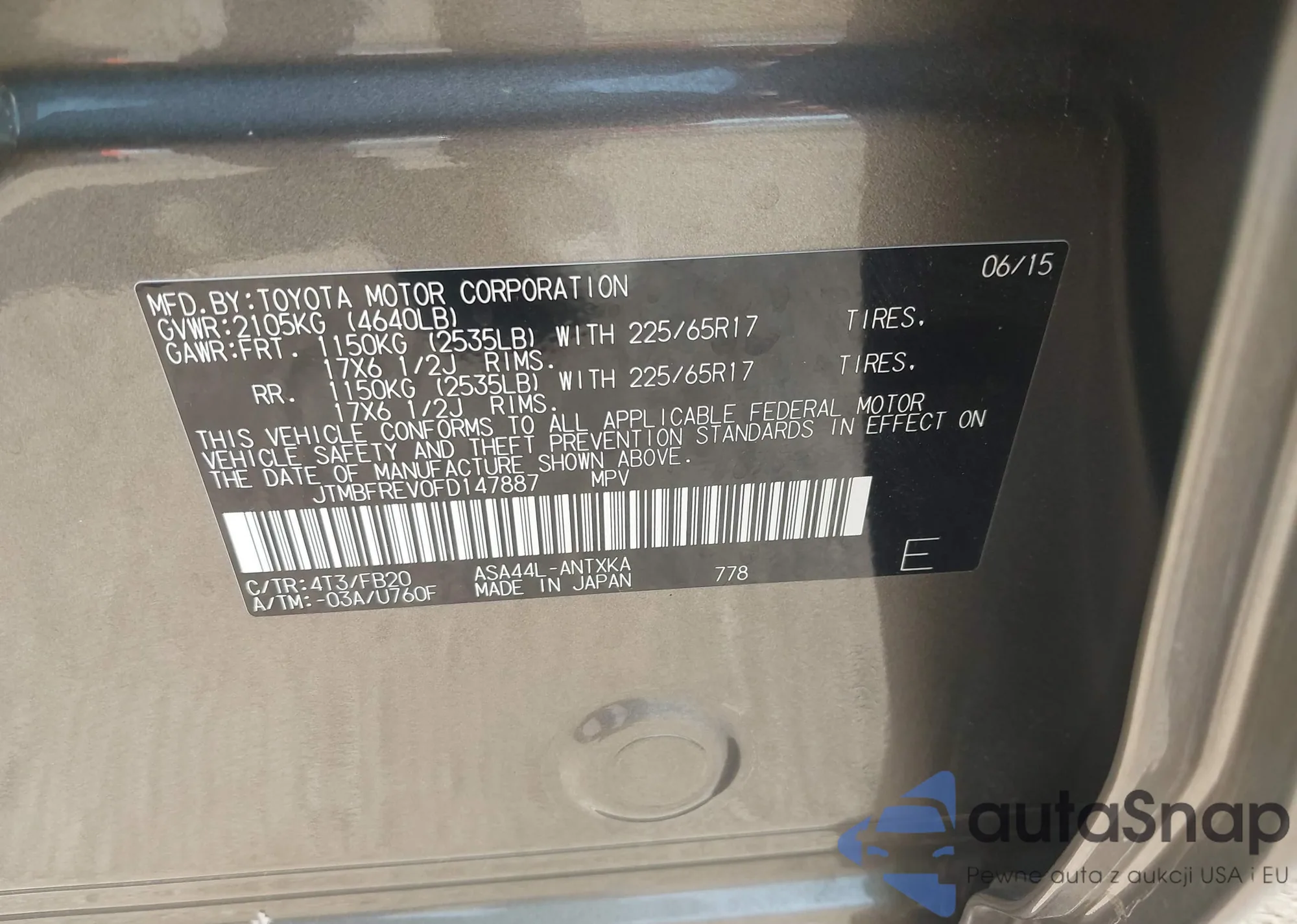 VIN: JTMBFREV0FD147887
