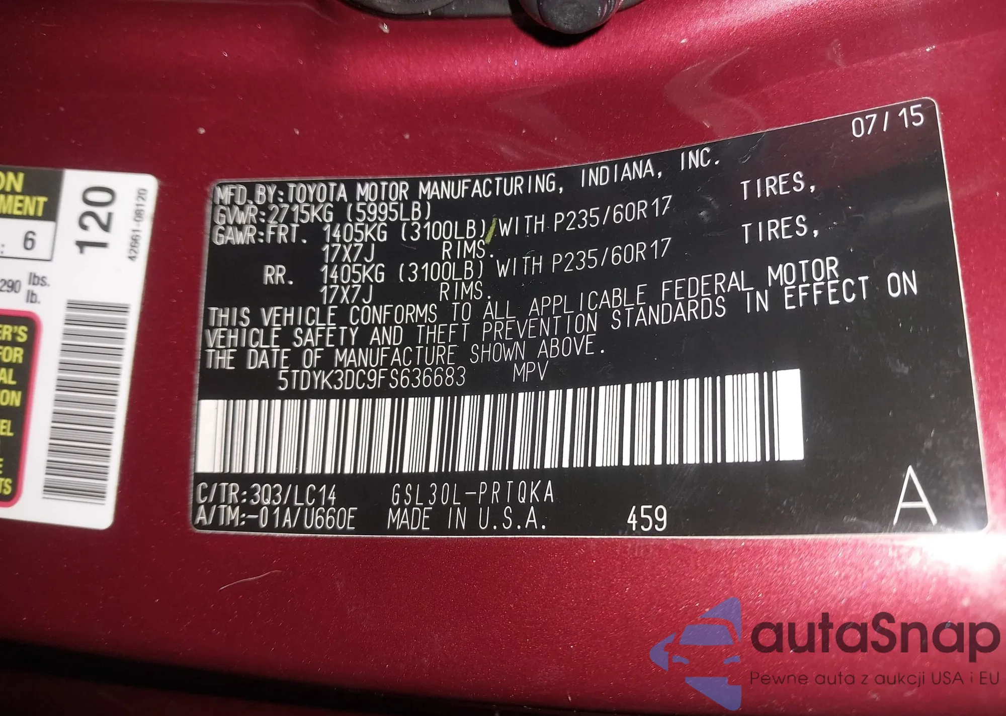 VIN: 5TDYK3DC9FS636683