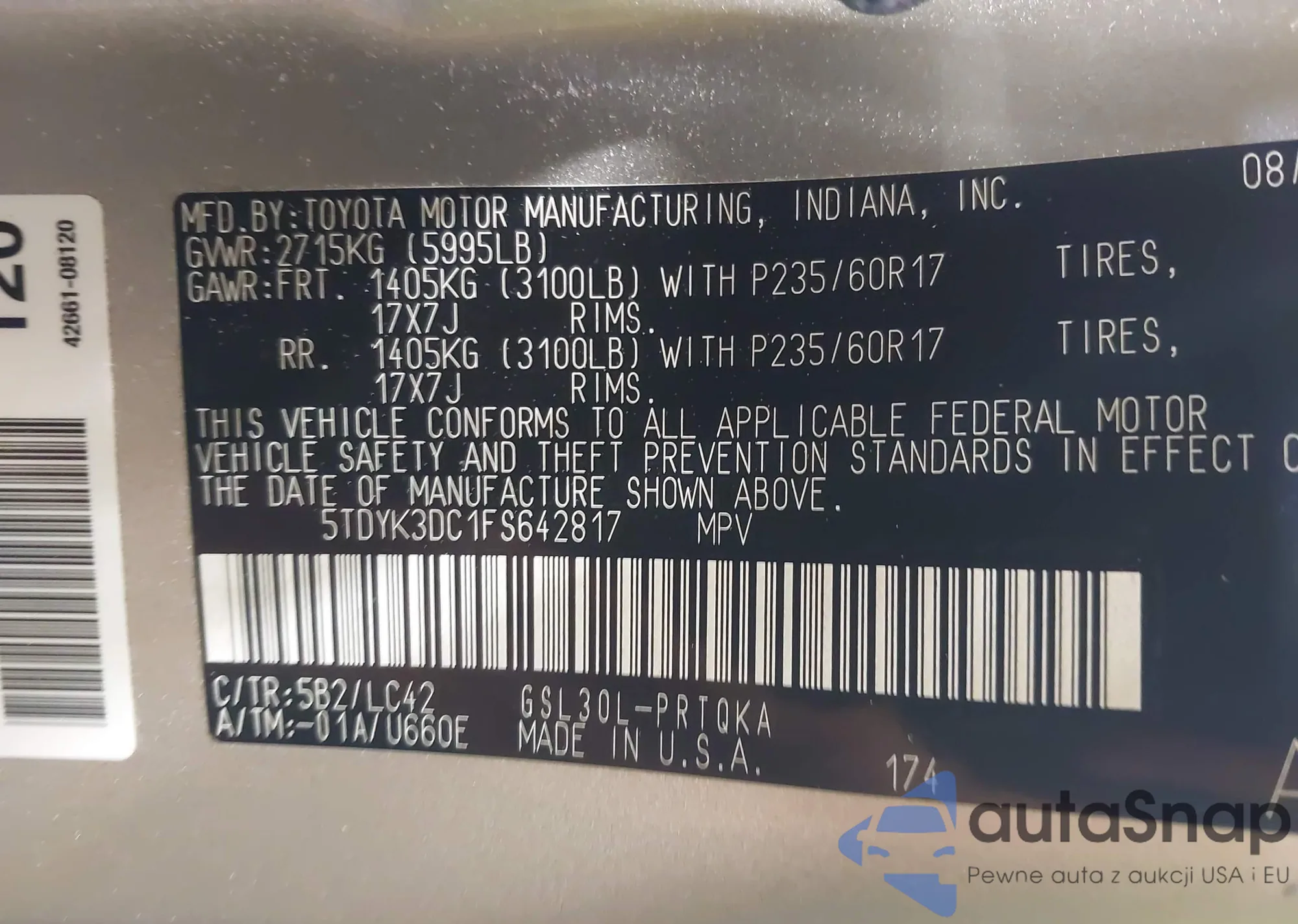 VIN: 5TDYK3DC1FS642817