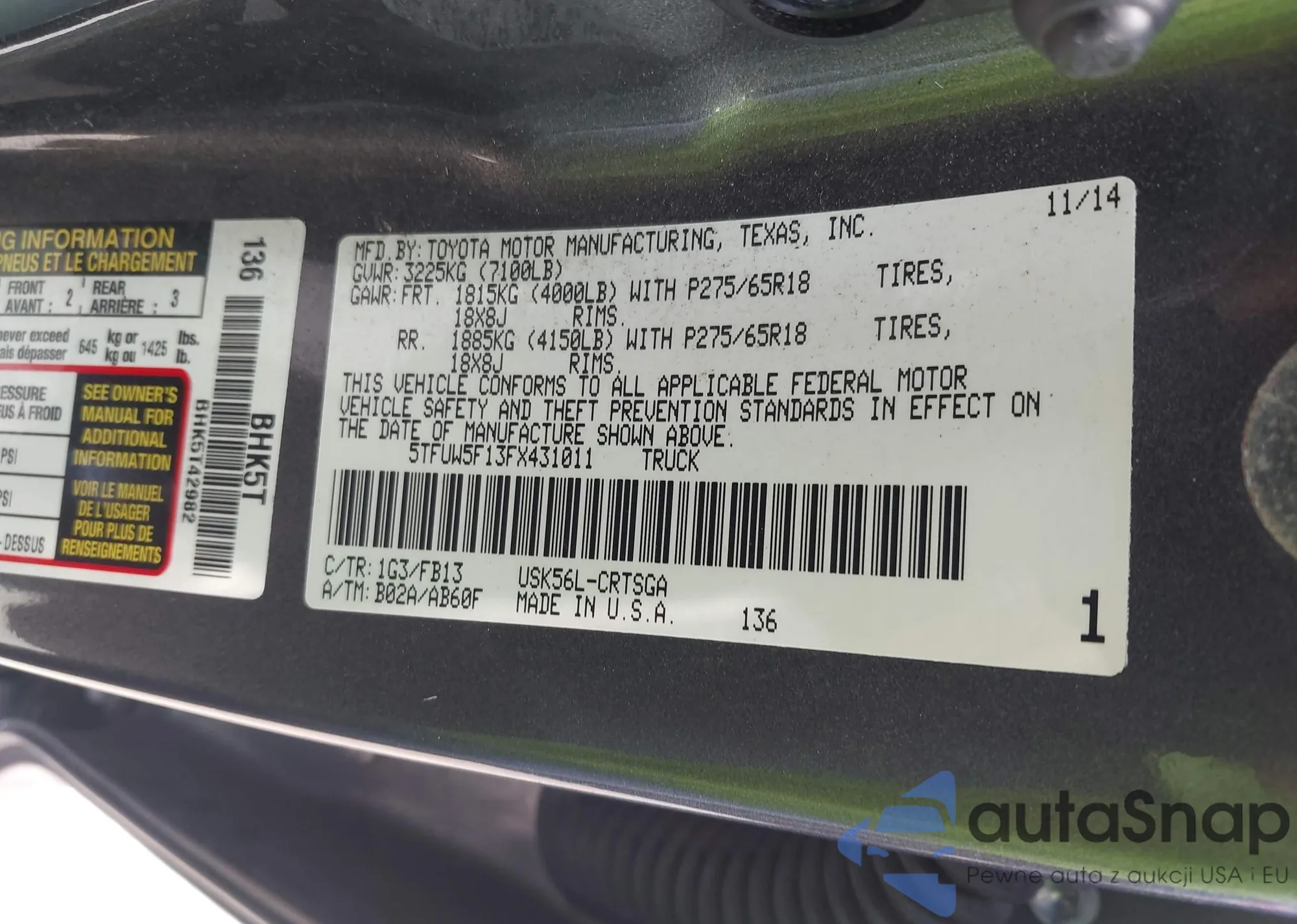 VIN: 5TFUW5F13FX431011