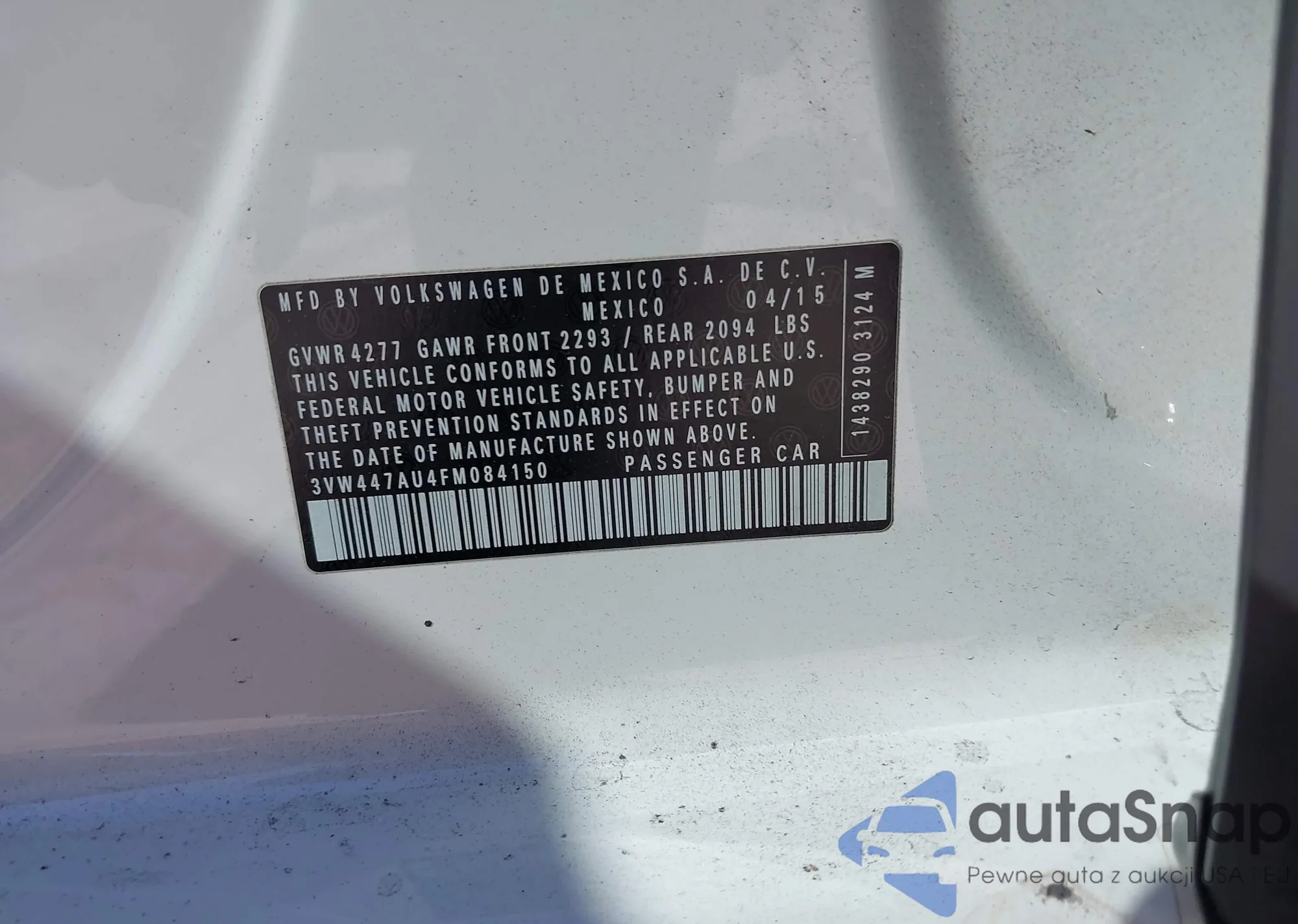 VIN: 3VW447AU4FM084150