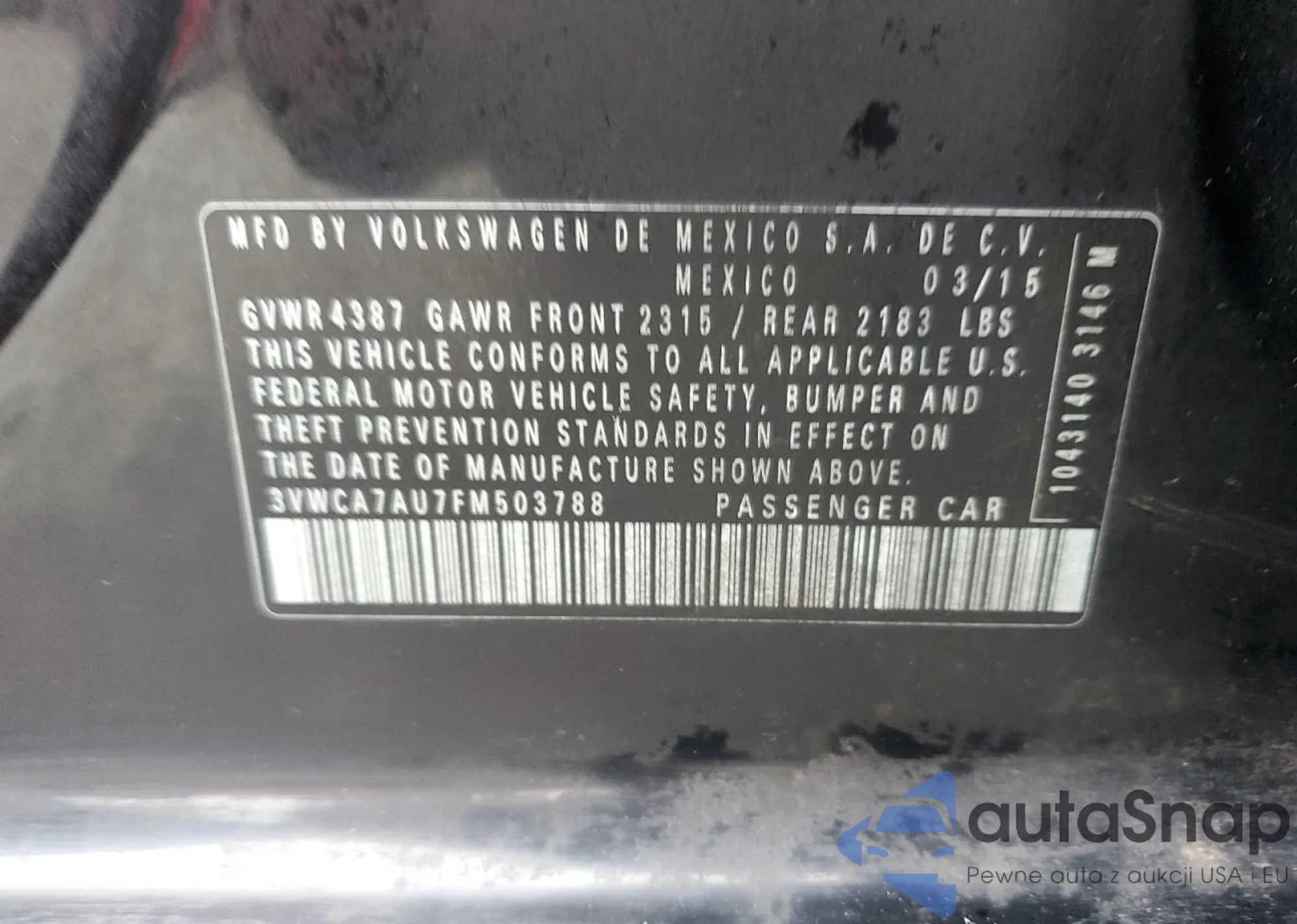 VIN: 3VWCA7AU7FM503788