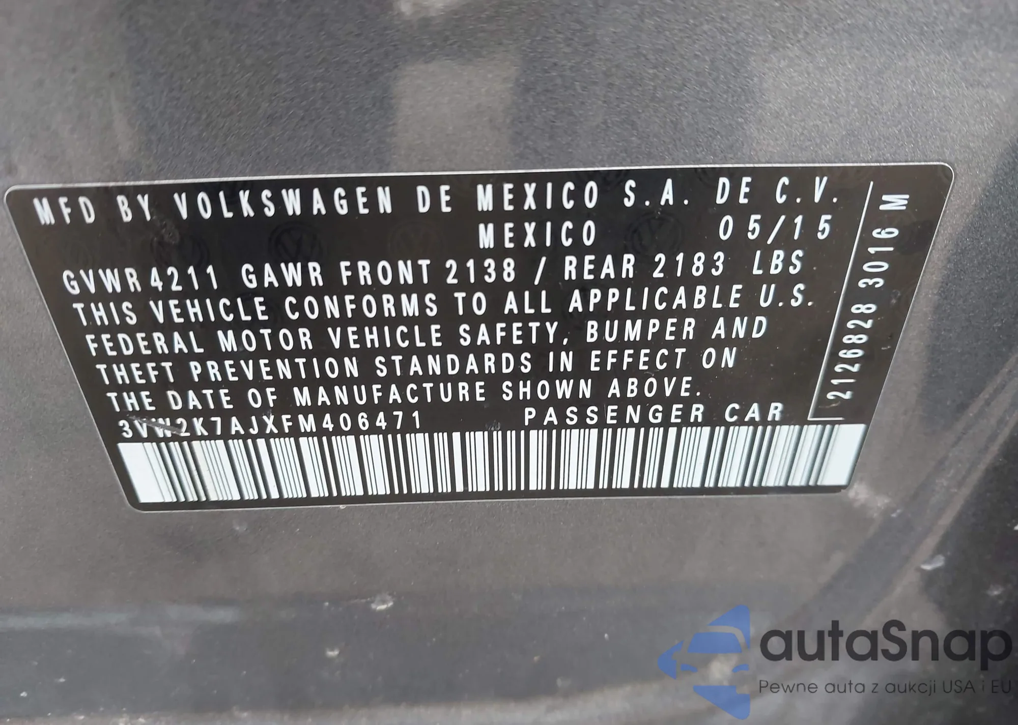 VIN: 3VW2K7AJXFM406471