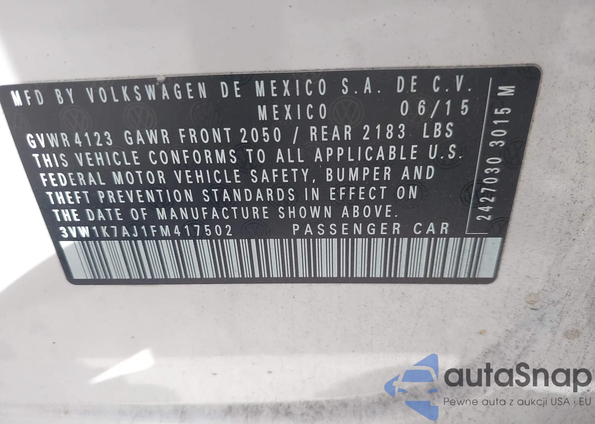 VIN: 3VW1K7AJ1FM417502