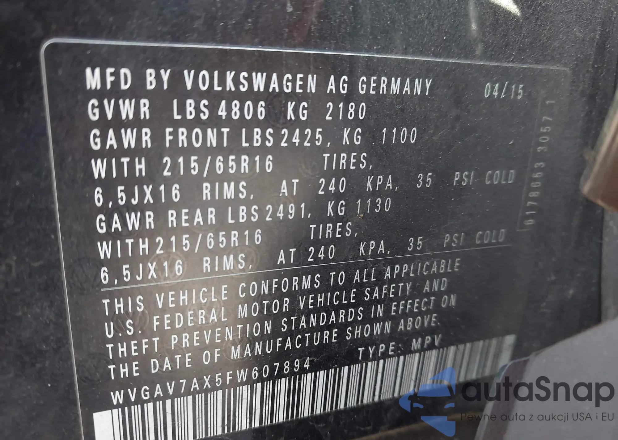WVGAV7AX5FW607894 IAAI