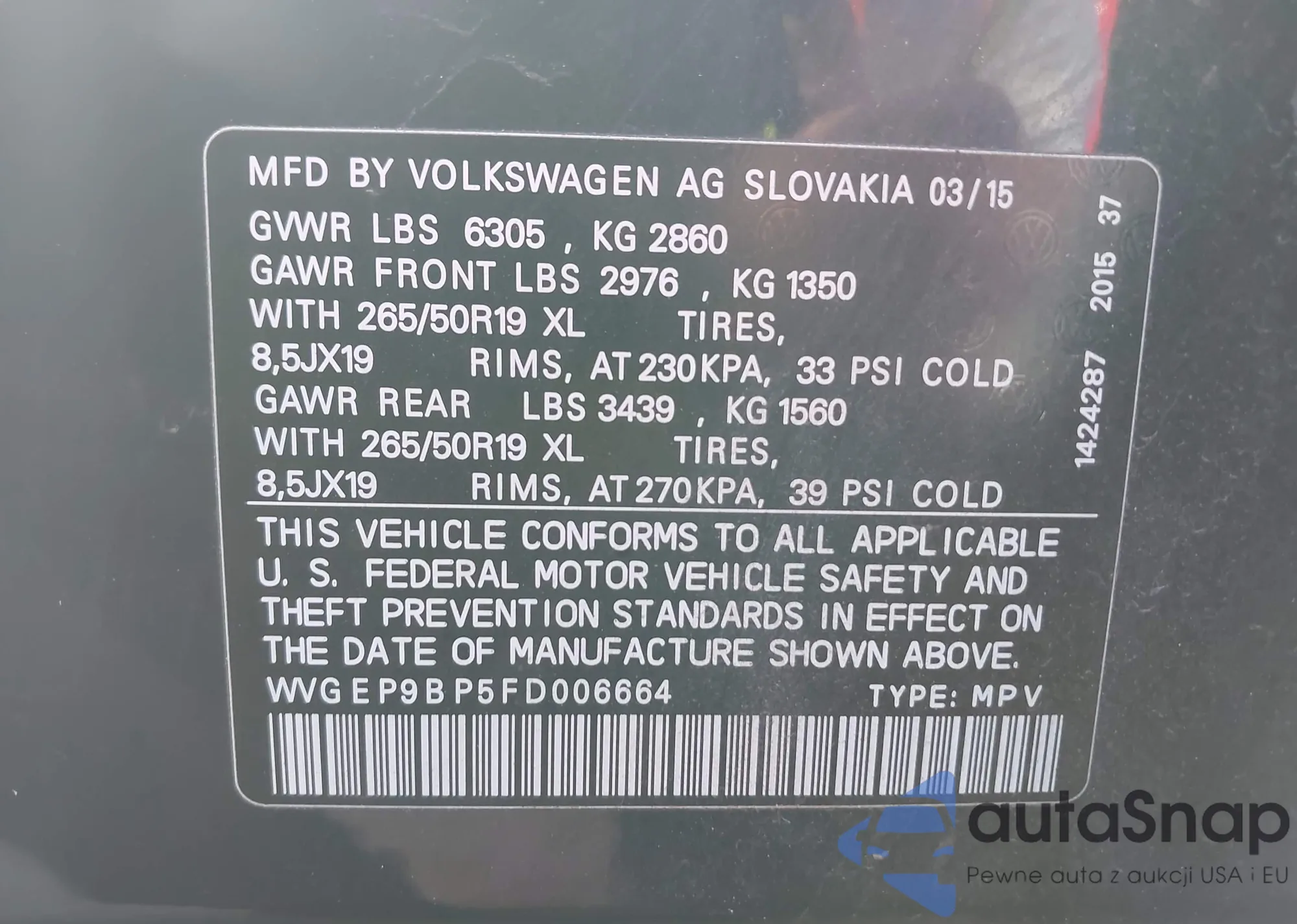 VIN: WVGEP9BP5FD006664