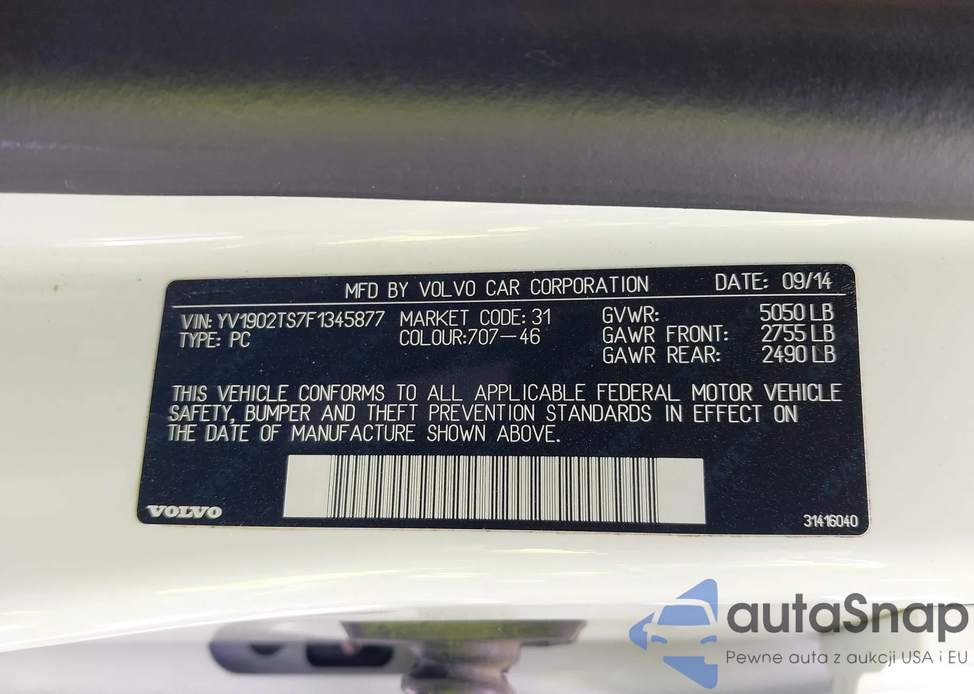 VIN: YV1902TS7F1345877