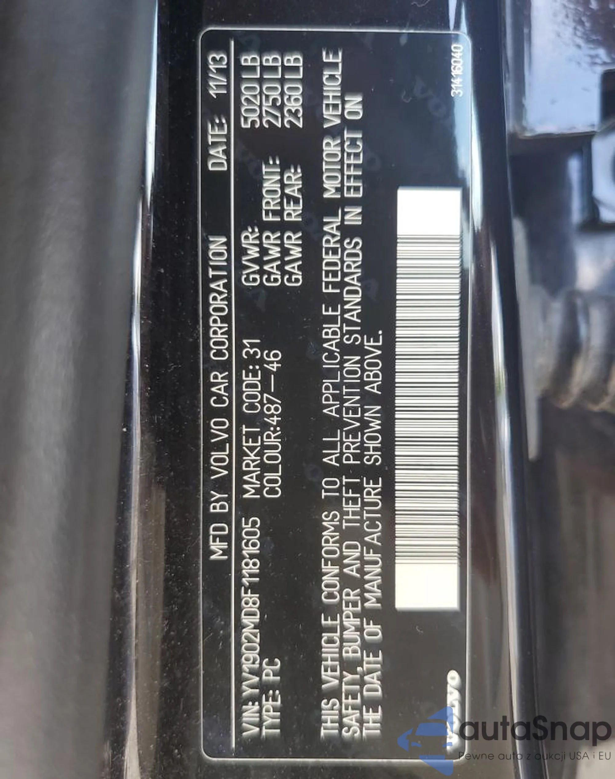 VIN: YV1902MD8F1181605