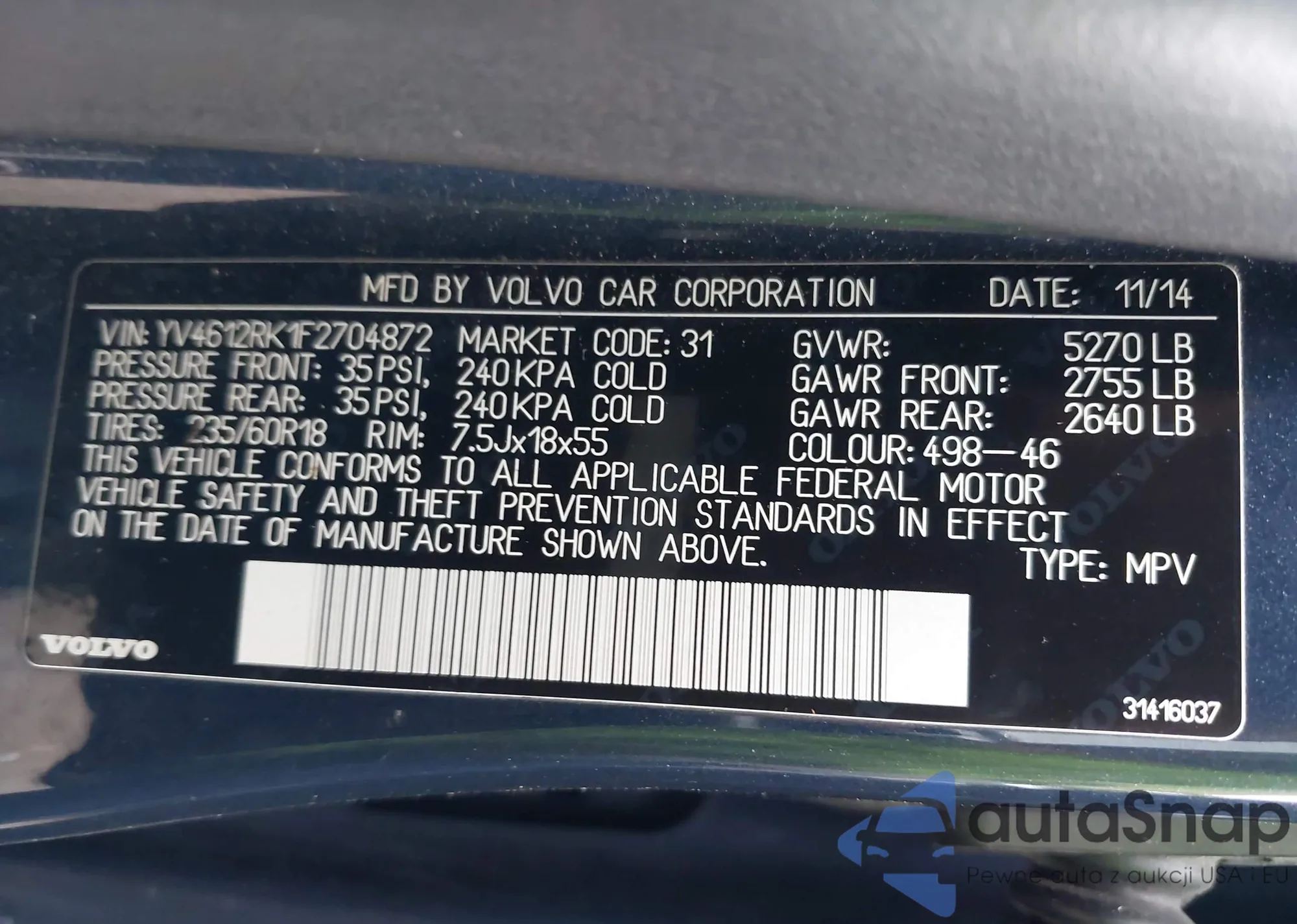 VIN: YV4612RK1F2704872
