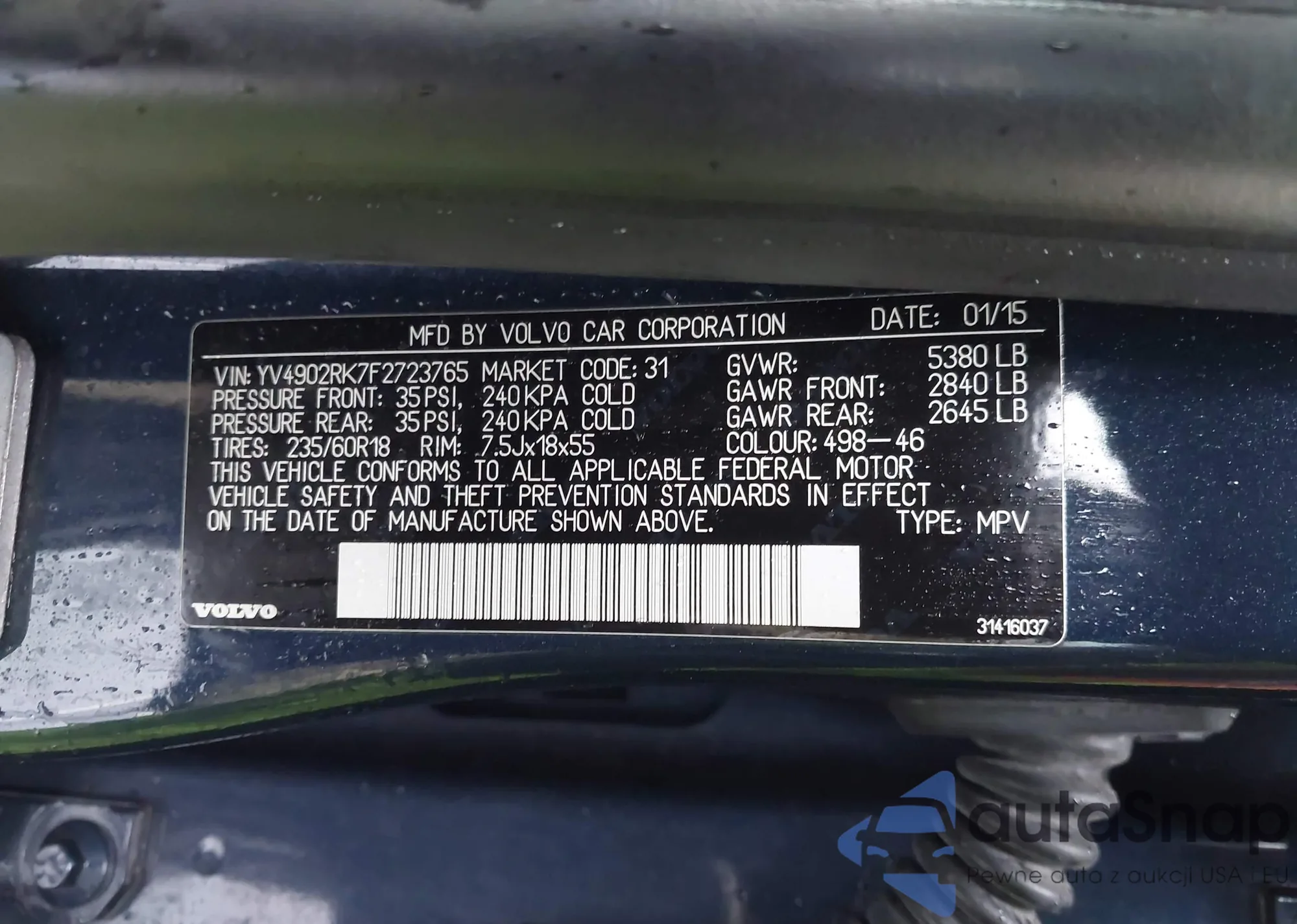 • VIN: YV4902RK7F2723765