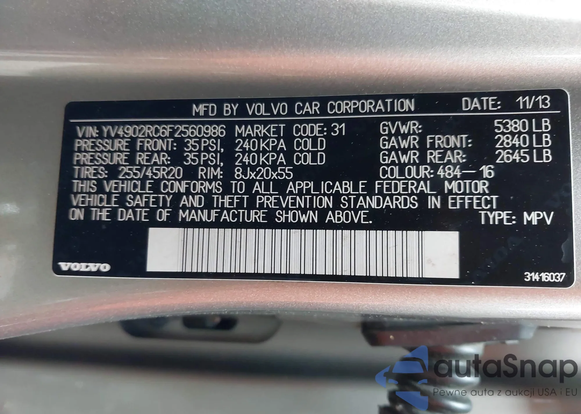 VIN: YV4902RC6F2560986